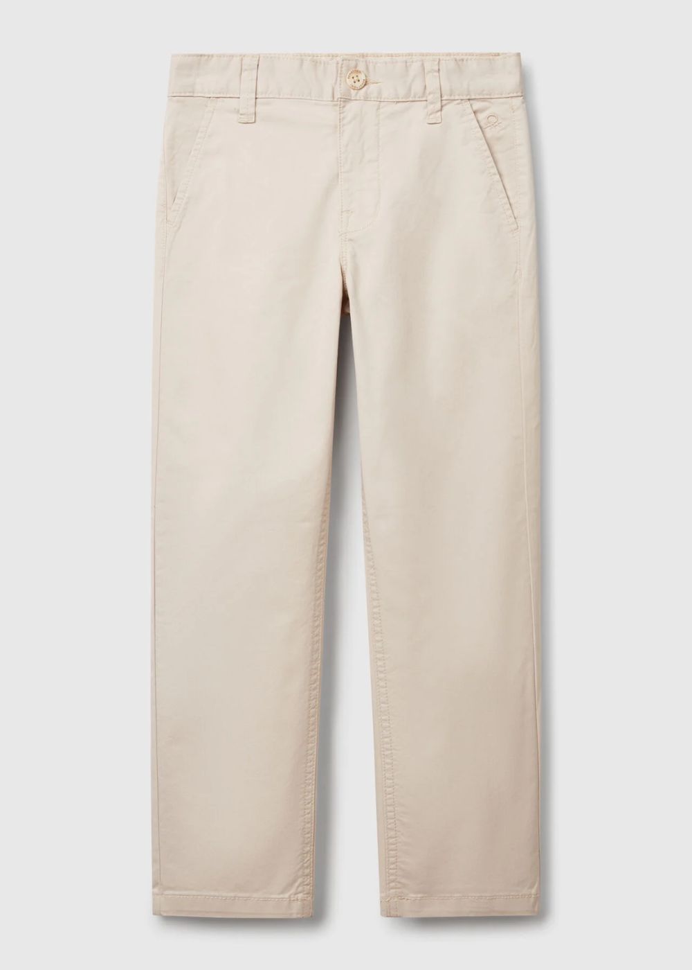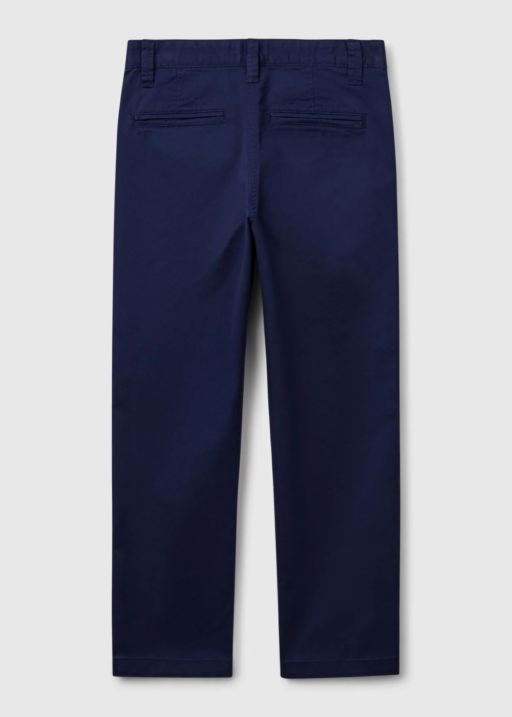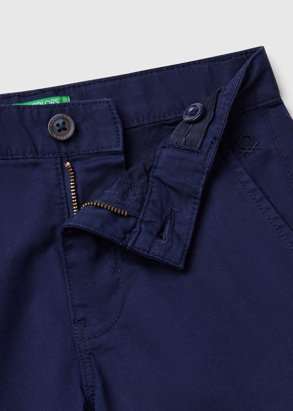 Long chino-style trousers in stretch cotton with a warm feel. Slim fit with regular waist and adjustable internal elastic. Zip and button opening, front pockets. Welt pockets and small pleats on the back. Logo embroidered near the left pocket. An excellent alternative to classic denim.