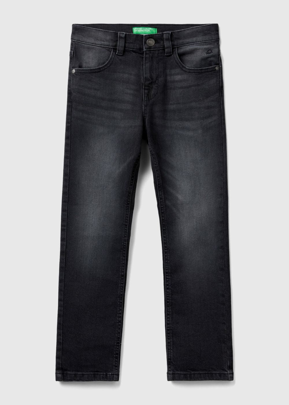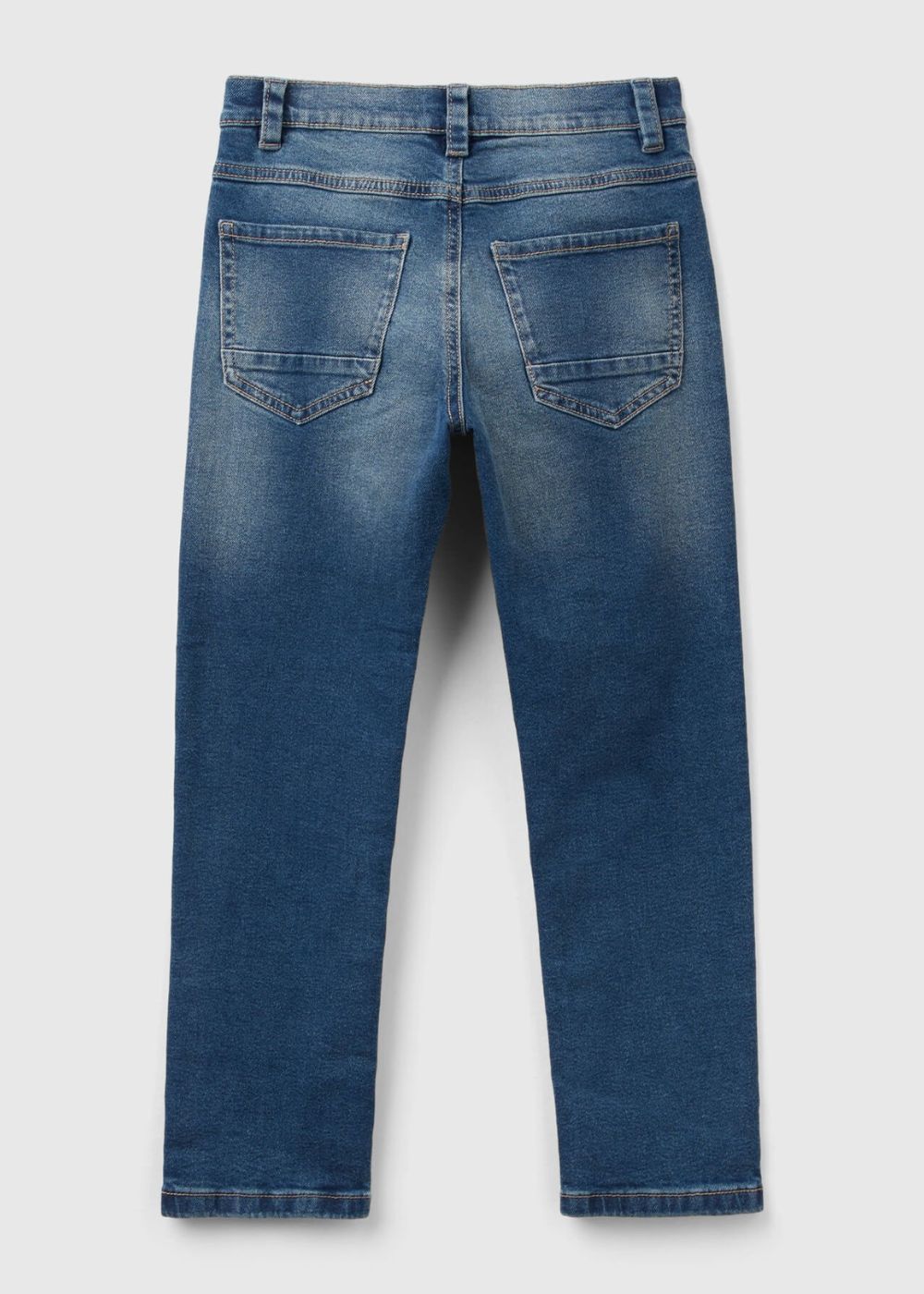 Long slim fit trousers with a worn look. Zip and button opening, logo embroidered on the top right. Internal adjustable elastic waistband. This garment is made with at least 20% RCS certified recycled cotton. CERTIFIED BY ICEA - ICEA - TX - 611. Products certified to the Recycled Claim Standard (RCS) contain recycled content that has been independently verified at every stage of the supply chain, from the recycling to the finished product.