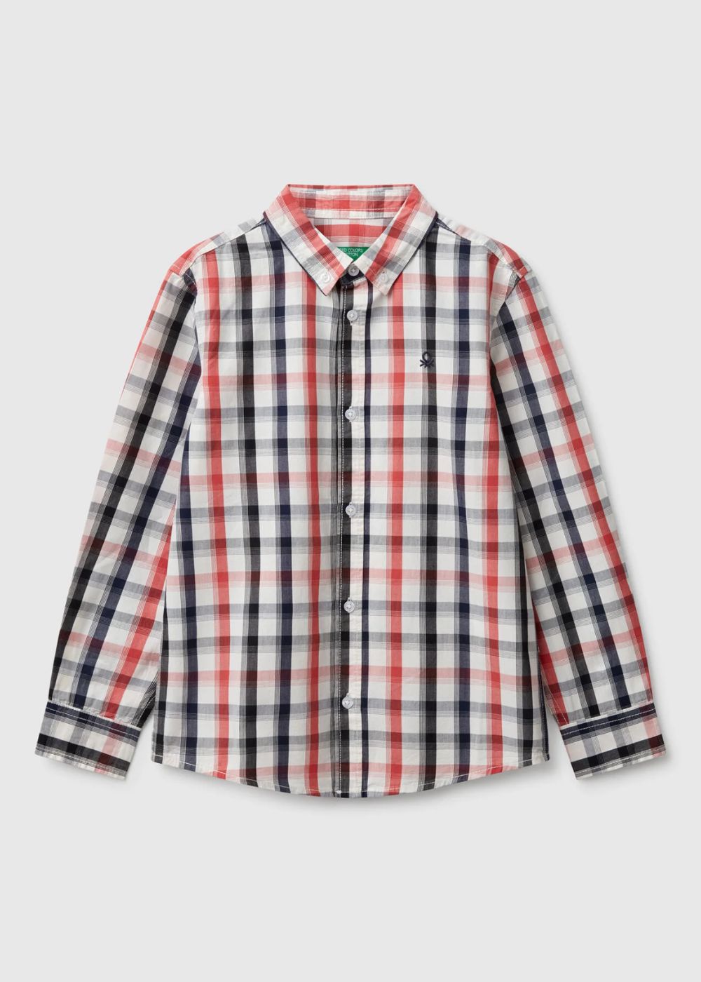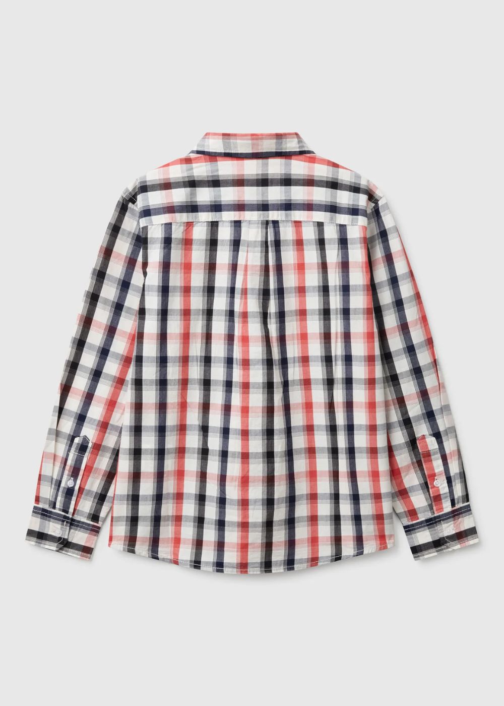 Long sleeve check shirt in yarn dyed pure cotton. Classic collar with buttons, front buttoning and embroidered logo on left side. Casual style for a garment that lends itself to multiple occasions of use.