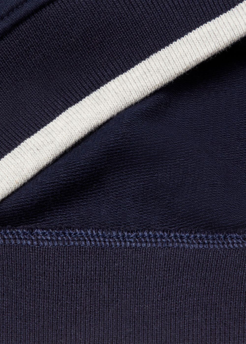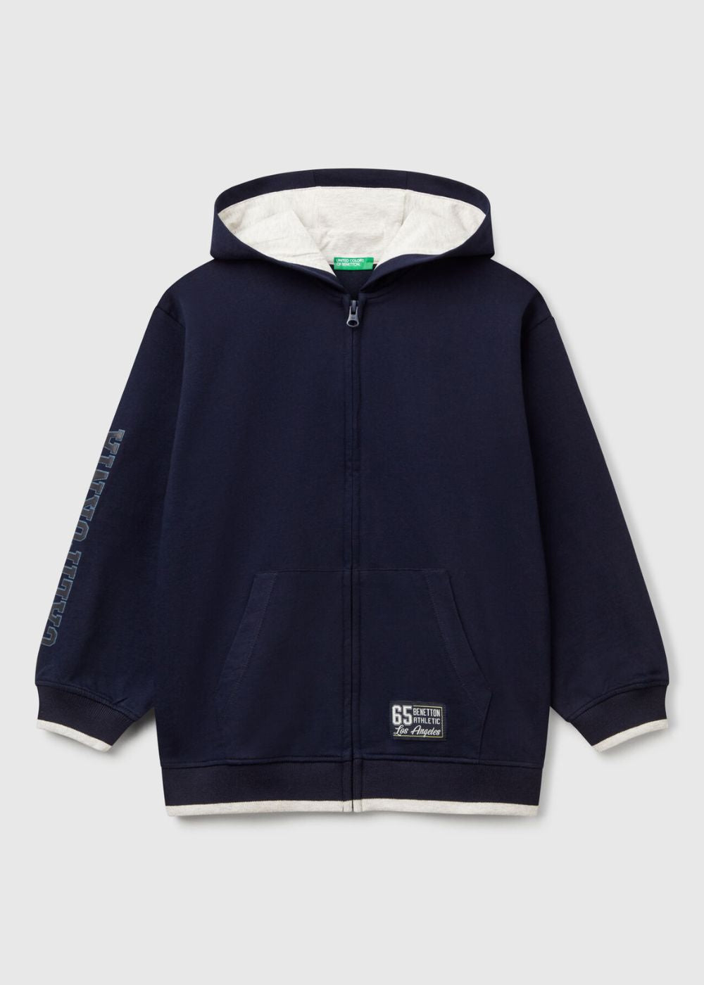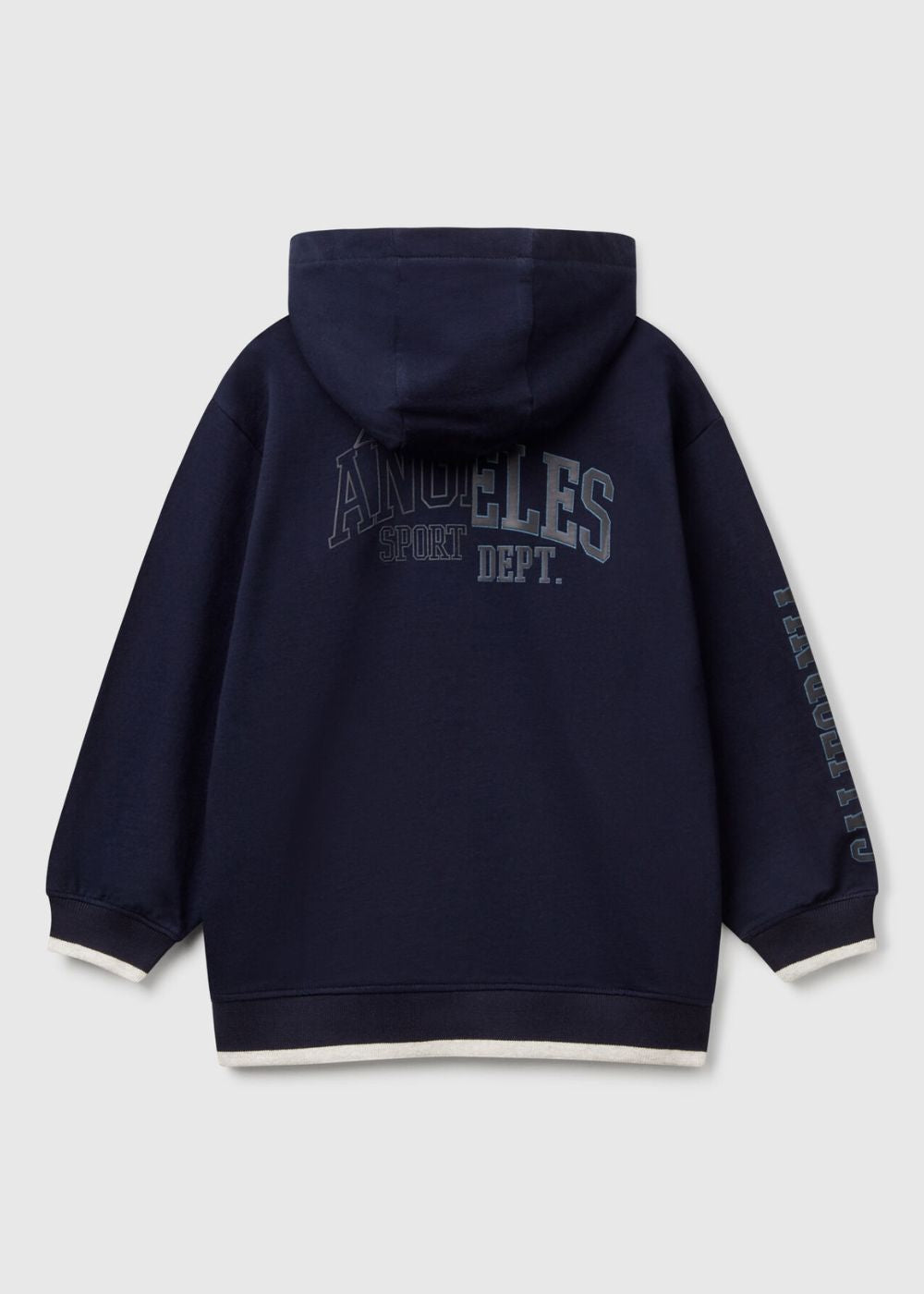 Lightweight, long sleeve sweatshirt in a cotton blend with a loose fit. Featuring a hood, zip opening and front patch pockets. Rubberized print on the sleeves. A comfortable, cosy and versatile garment.