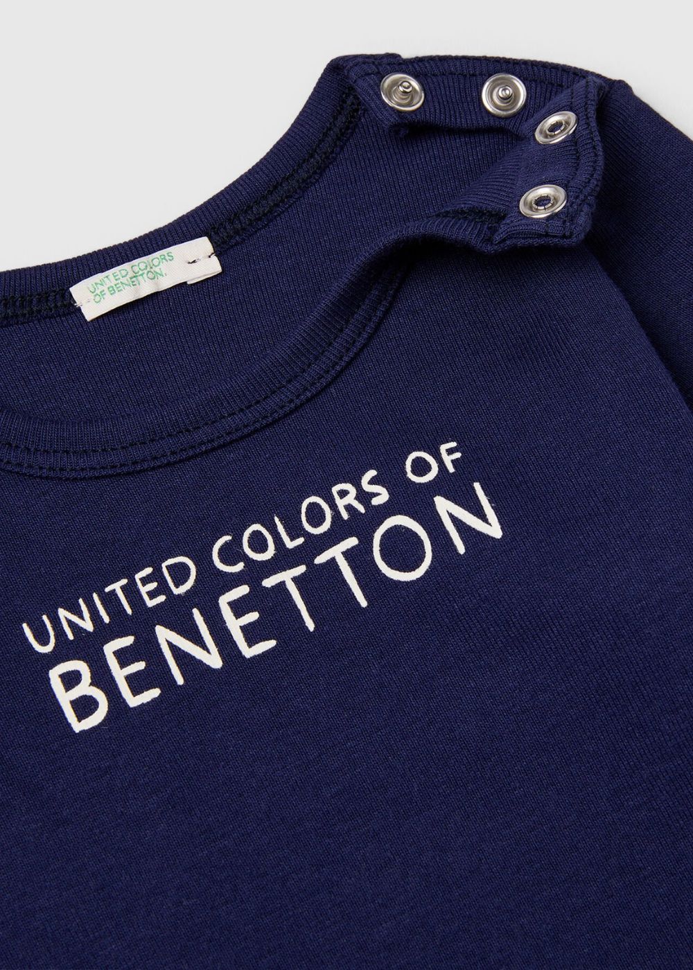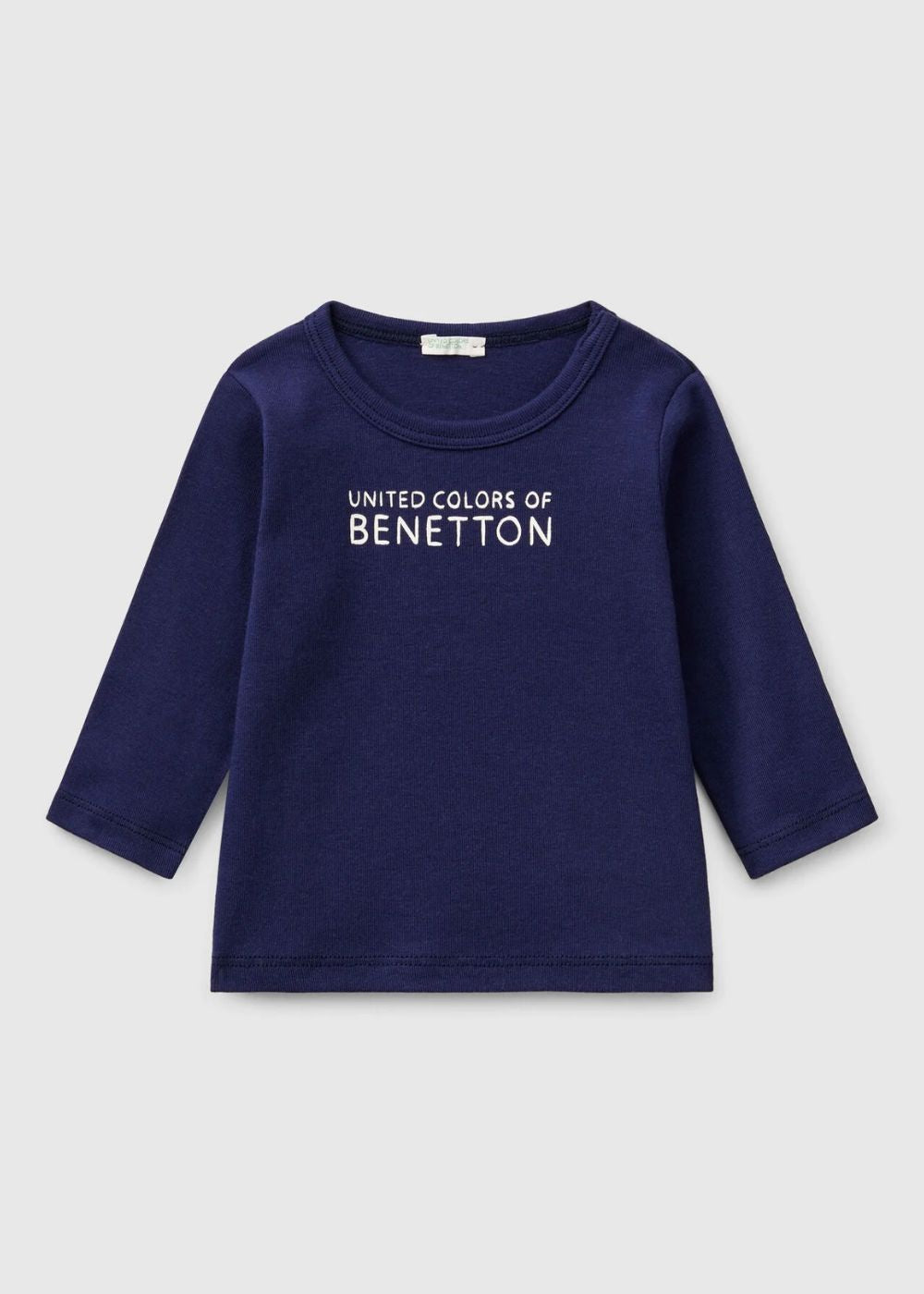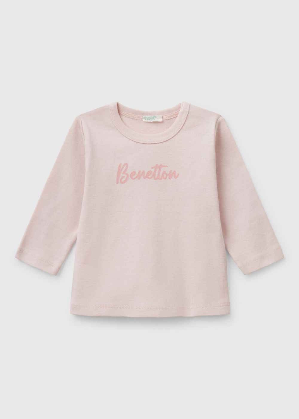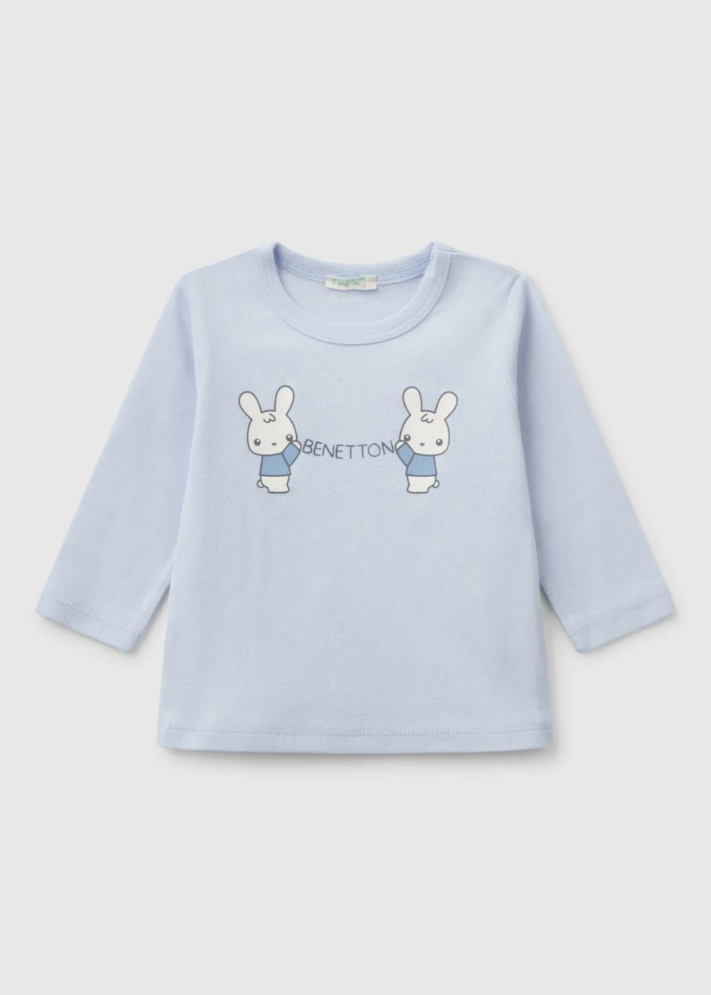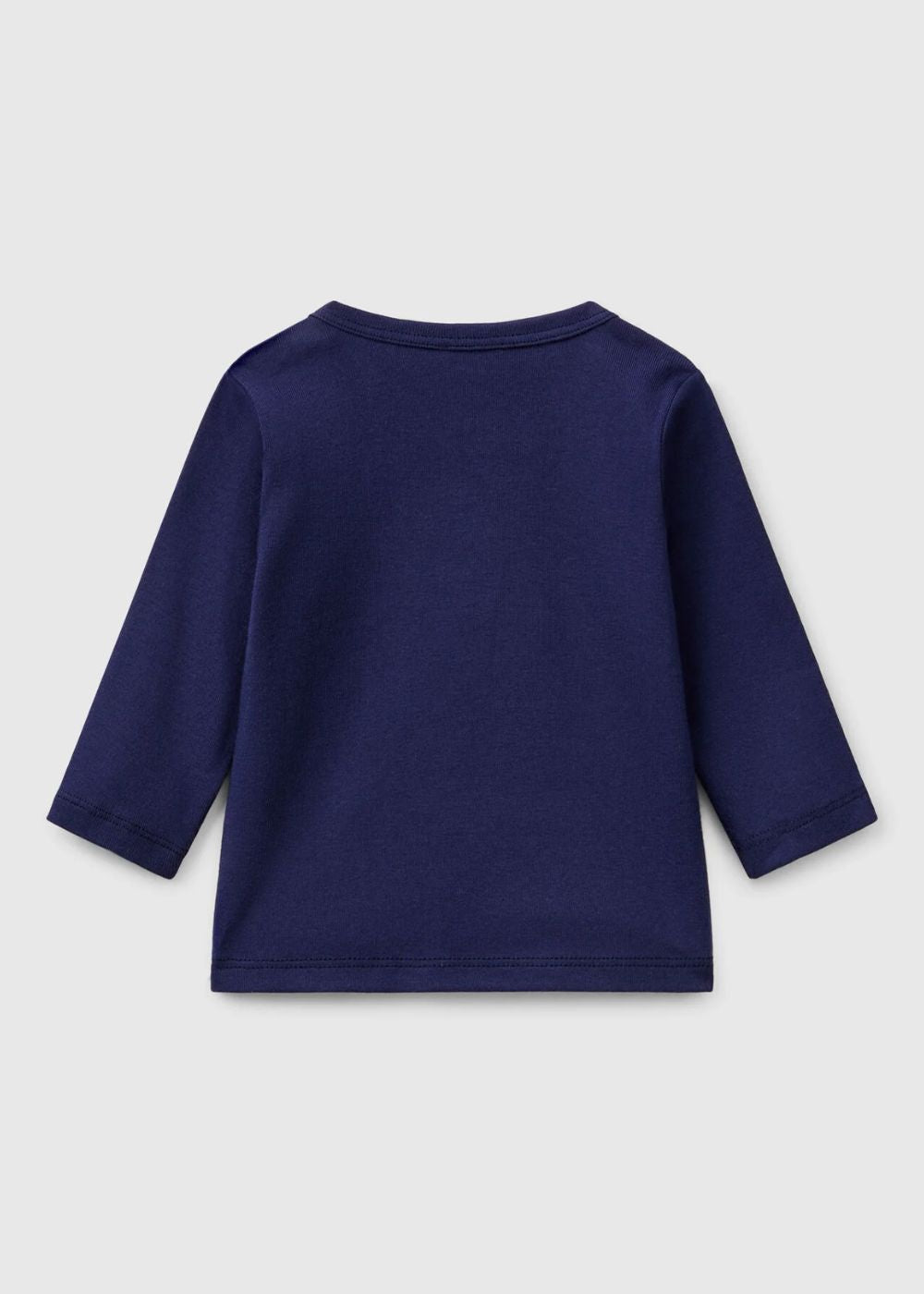 Long sleeve crew neck t-shirt in organic ribbed cotton. Basic and comfortable, with hidden snap button opening on the left shoulder and front print. Item made with fabric containing at least 95% organic cotton.