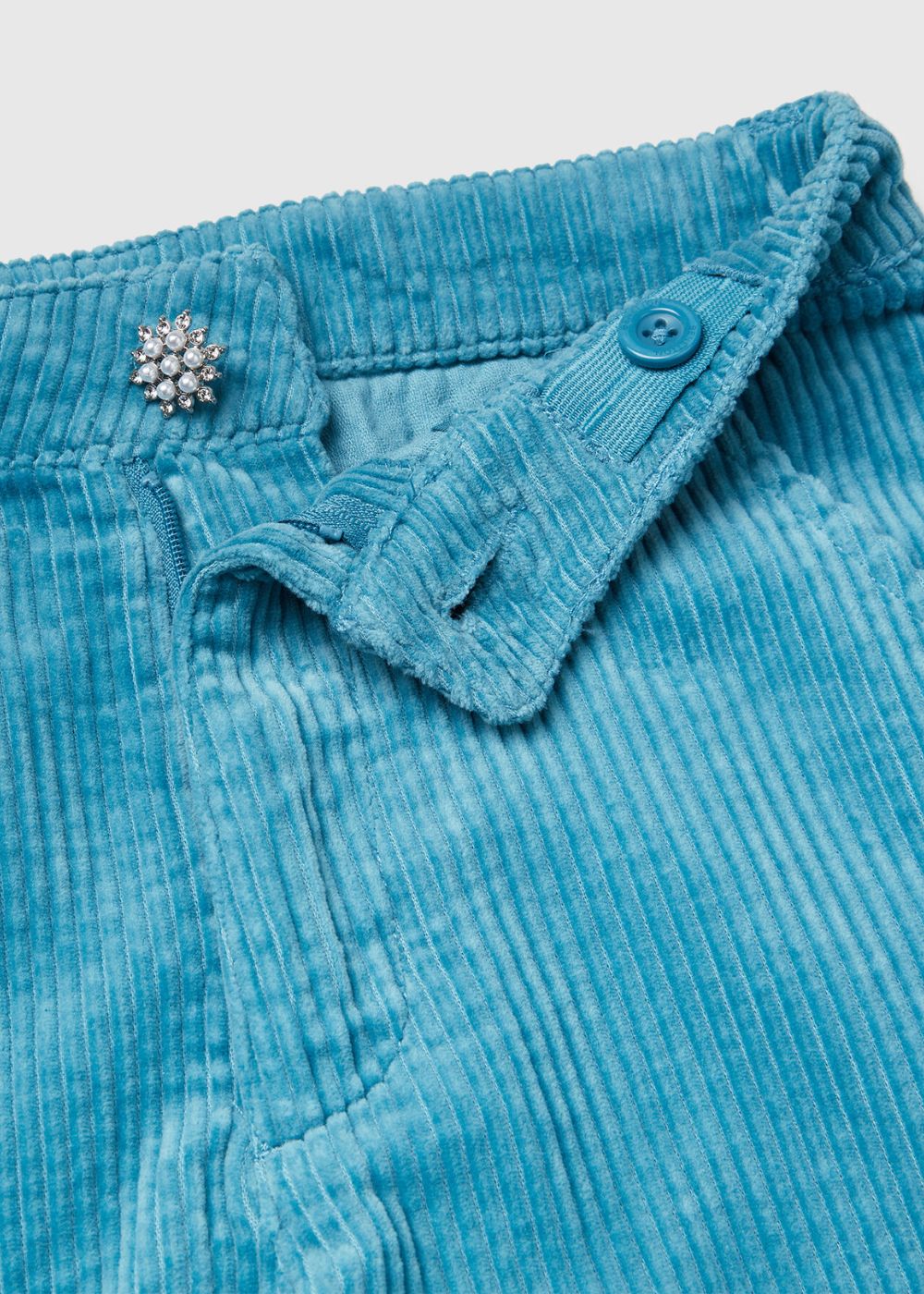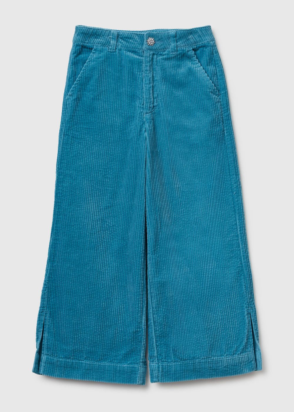 Long trousers in thin ribbed pure cotton corduroy. Loose fit with side slits at the bottom. Front opening with zip and button, front pockets and welt pockets on the back. For a chic and modern look.