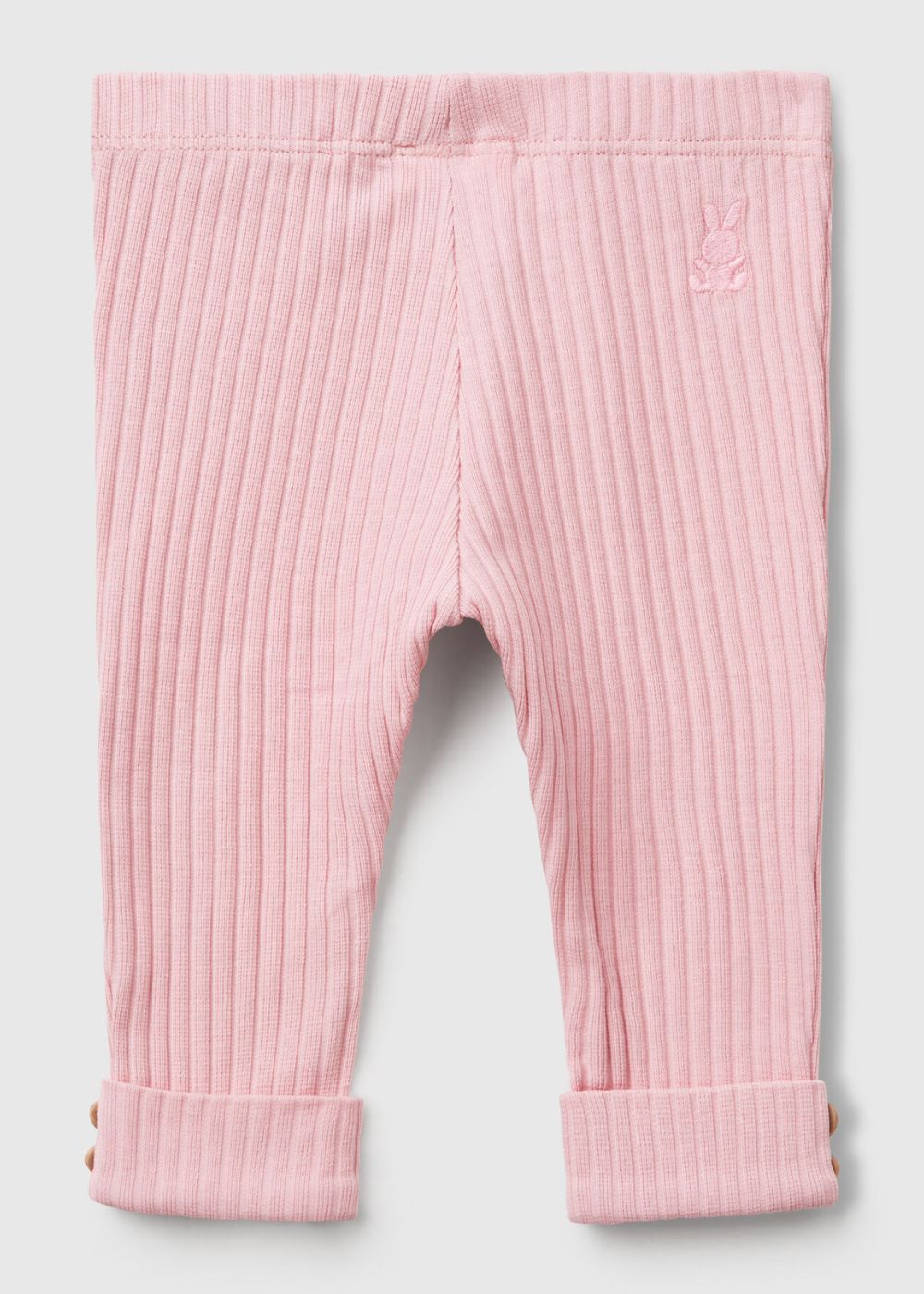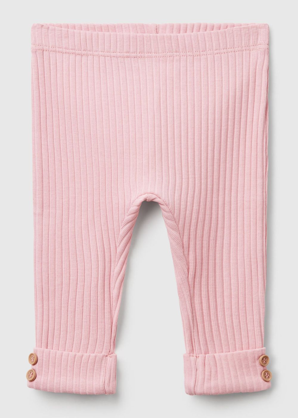Long legging-style trousers in ribbed stretch cotton. Internal elastic waistband and decorative wood-effect buttons applied on the lapel. Comfortable and easy to wear.