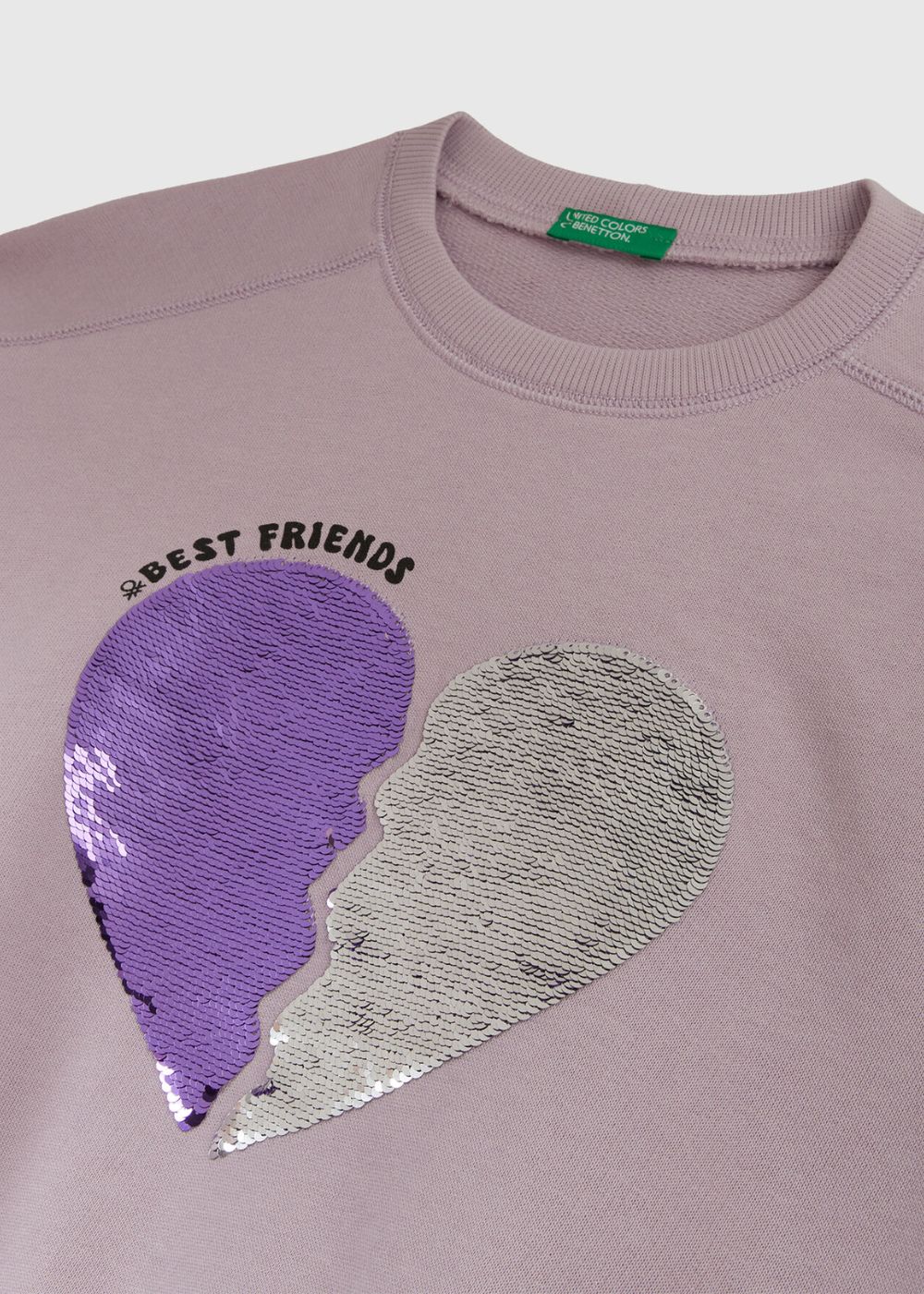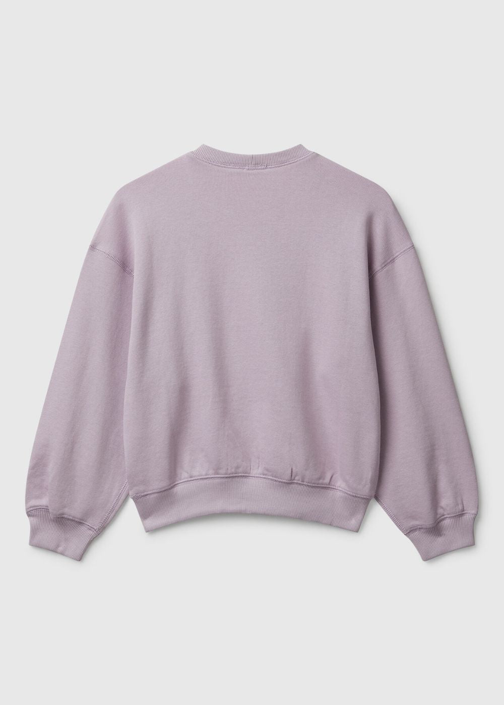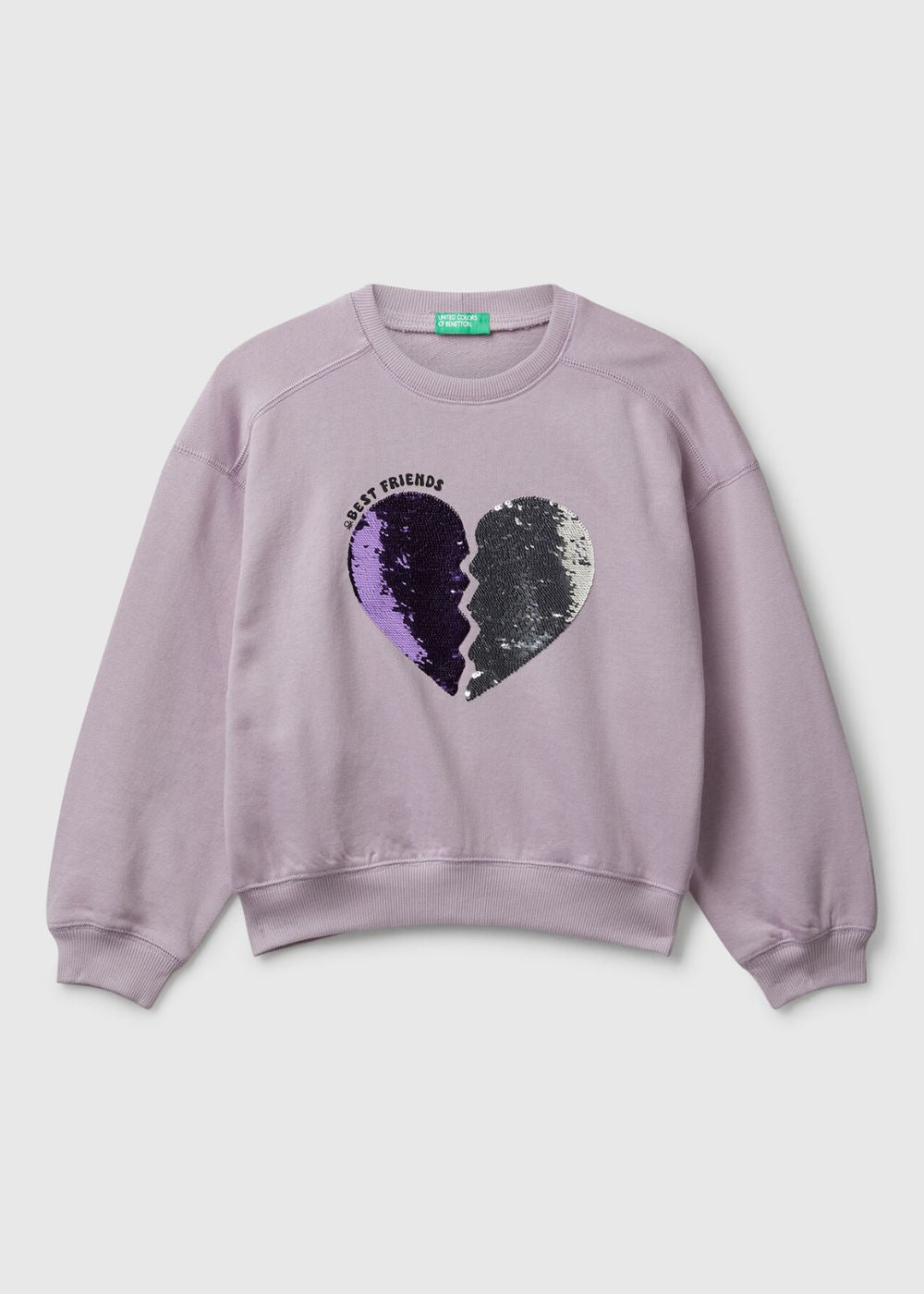 Crew neck long sleeve sweatshirt in pure cotton with consistent yet light feel. Dropped shoulders, loose fit, sequined print and graphics on the front. Comfy and sparkling, for a trendy look.