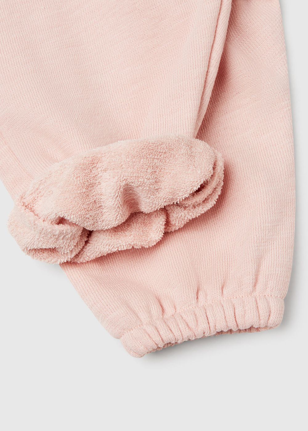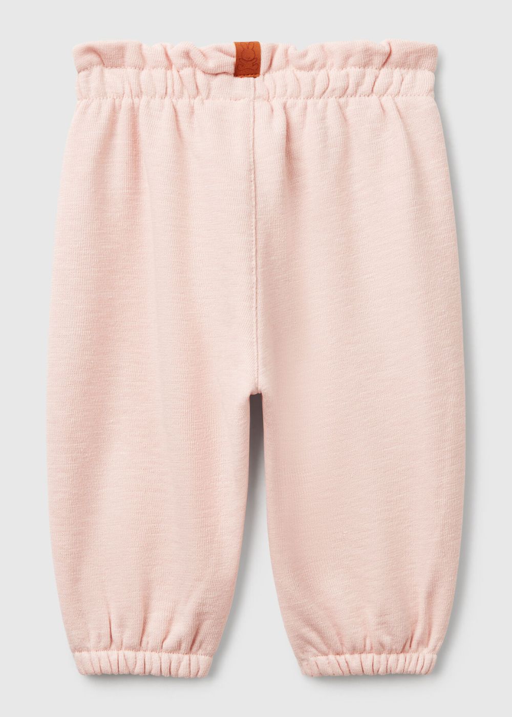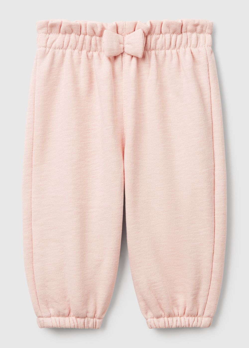 Long sweatpants in soft terry cloth cotton blend. High gathered waist with elastic and decorative bow. Cute and trendy.