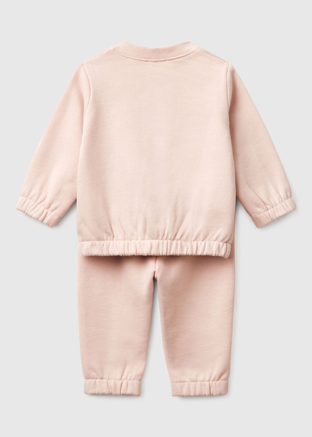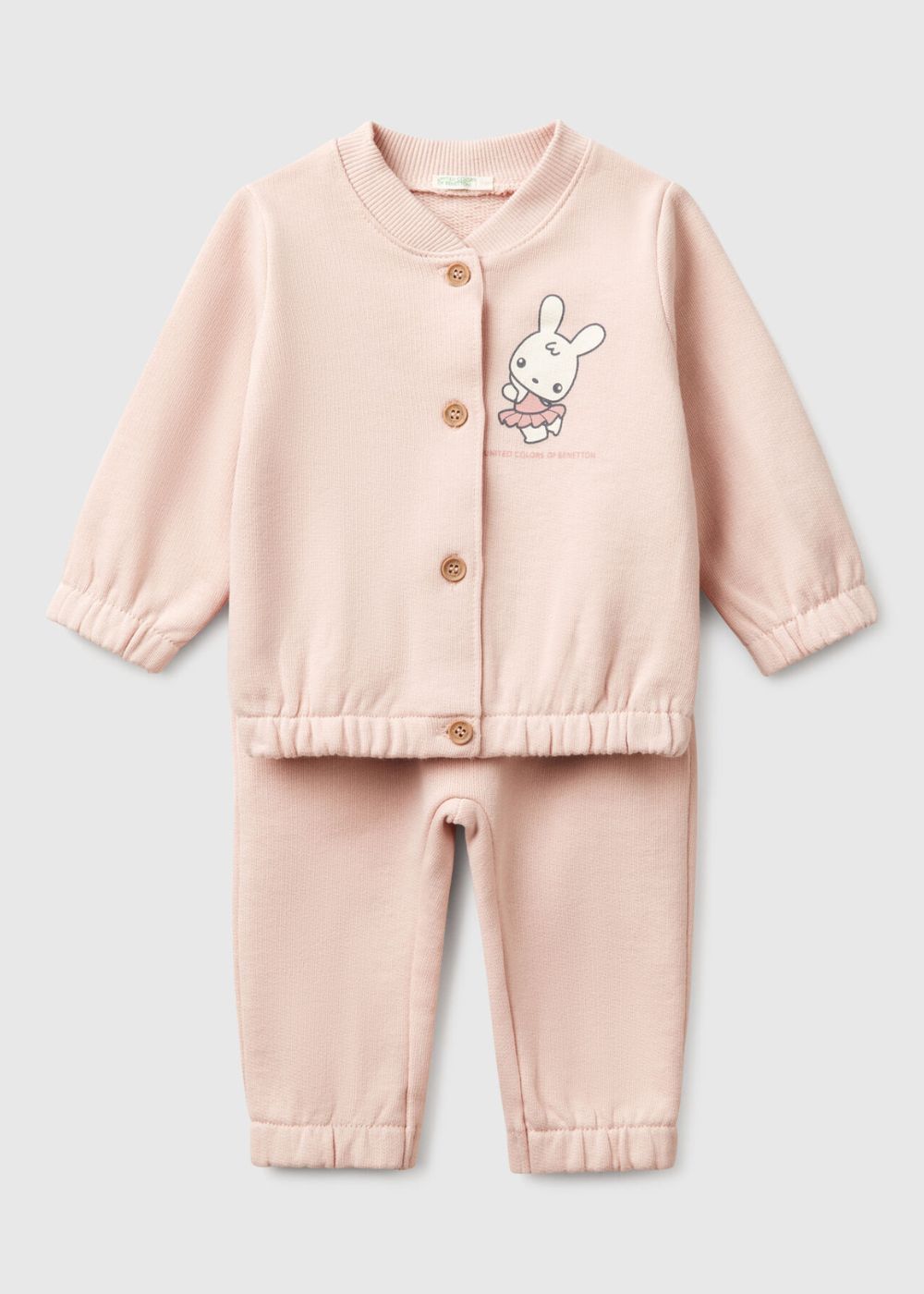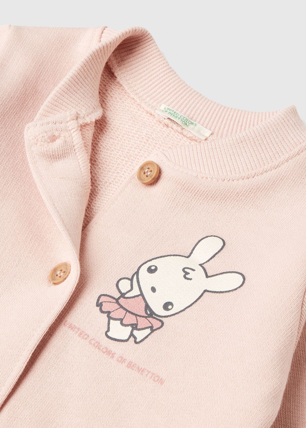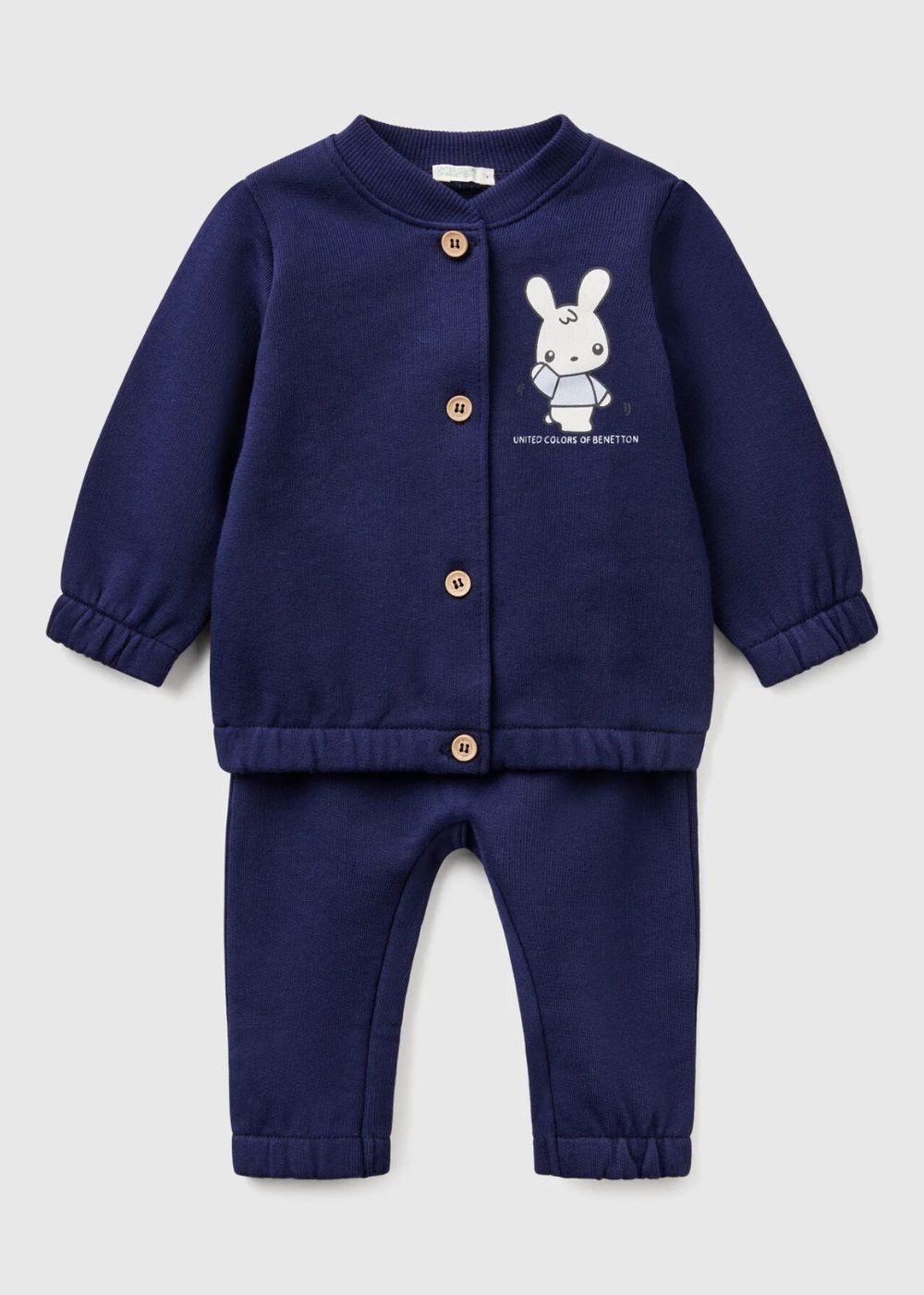 Coordinated set in soft organic cotton fleece with a firm yet lightweight feel. Long sleeve sweatshirt with wood-effect buttons, bomber style collar and animal print at left breast. Long trousers with inner elastic at waist. The utmost comfort for every day wear. Item made with material containing at least 95% organic cotton.