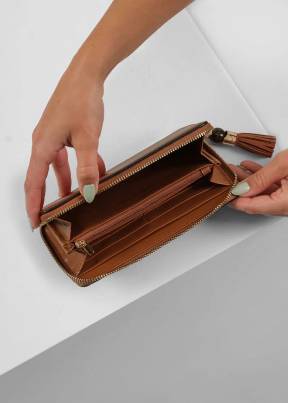 Myrtle is a large tassel purse designed for style and functionality. The Weekend Edit welcomes back style Myrtle - a lovely large purse finished with a signature colour-coordinated mini Thames Tassel for an added bit of fun. The molten metal secure zipper opens to reveal a generous amount of card slots and a middle zipper coin compartment. Myrtle matches beautifully with a number of our bags and she makes a wonderful gift for someone special too.