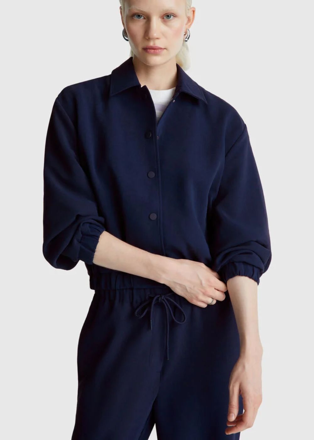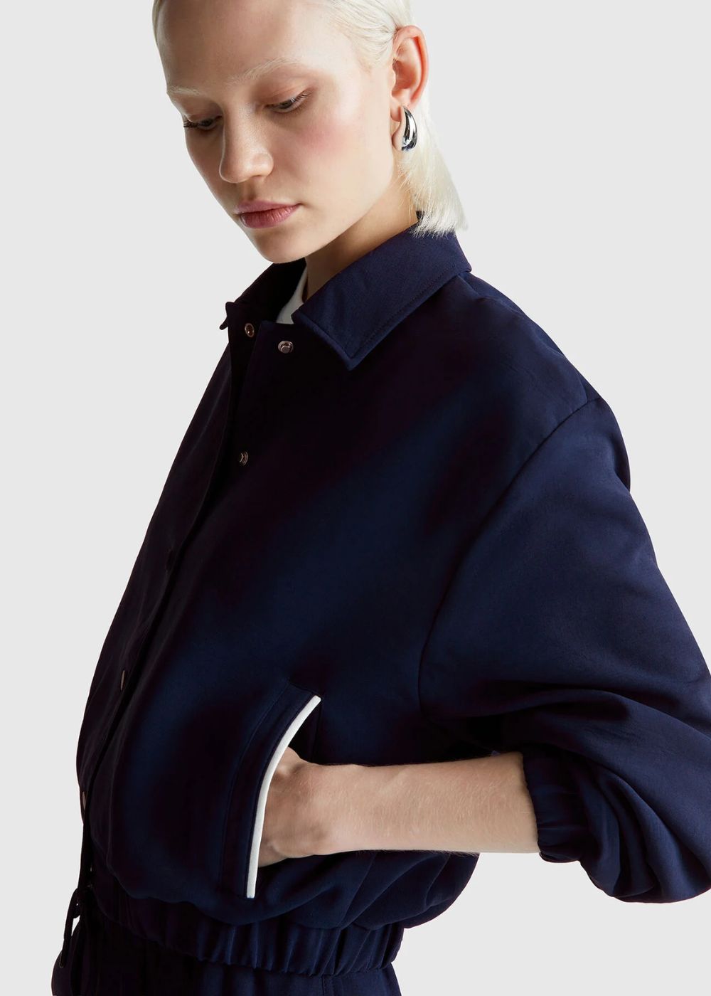Bomber model jacket with regular fit and crinkled look. Shirt collar, front opening with snap buttons and front inset pockets. This garment is made with at least 20% RCS certified recycled polyester. CERTIFIED BY ICEA - ICEA - TX - 611. Products certified to the Recycled Claim Standard (RCS) contain recycled content that has been independently verified at every stage of the supply chain, from the recycling to the finished product.