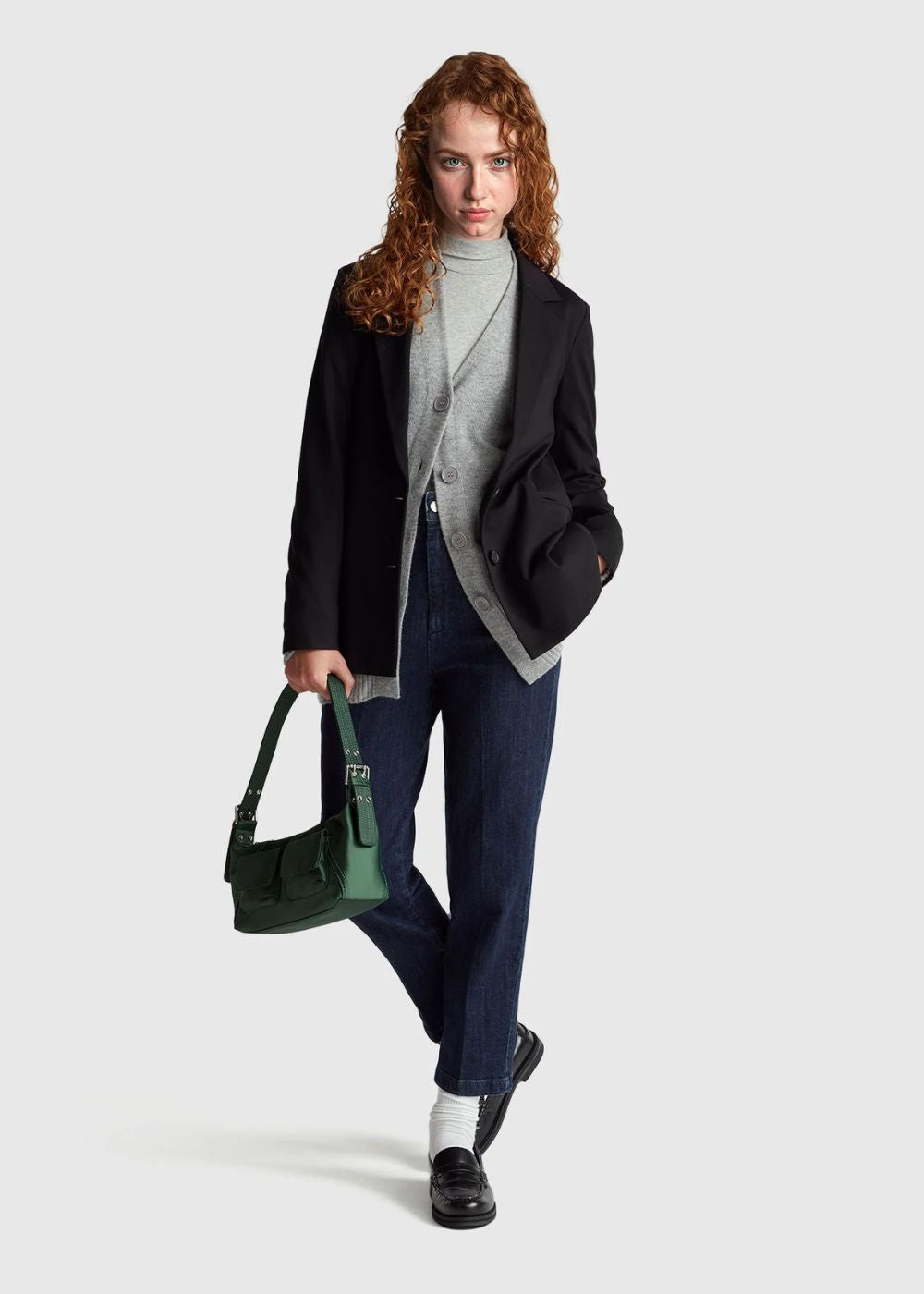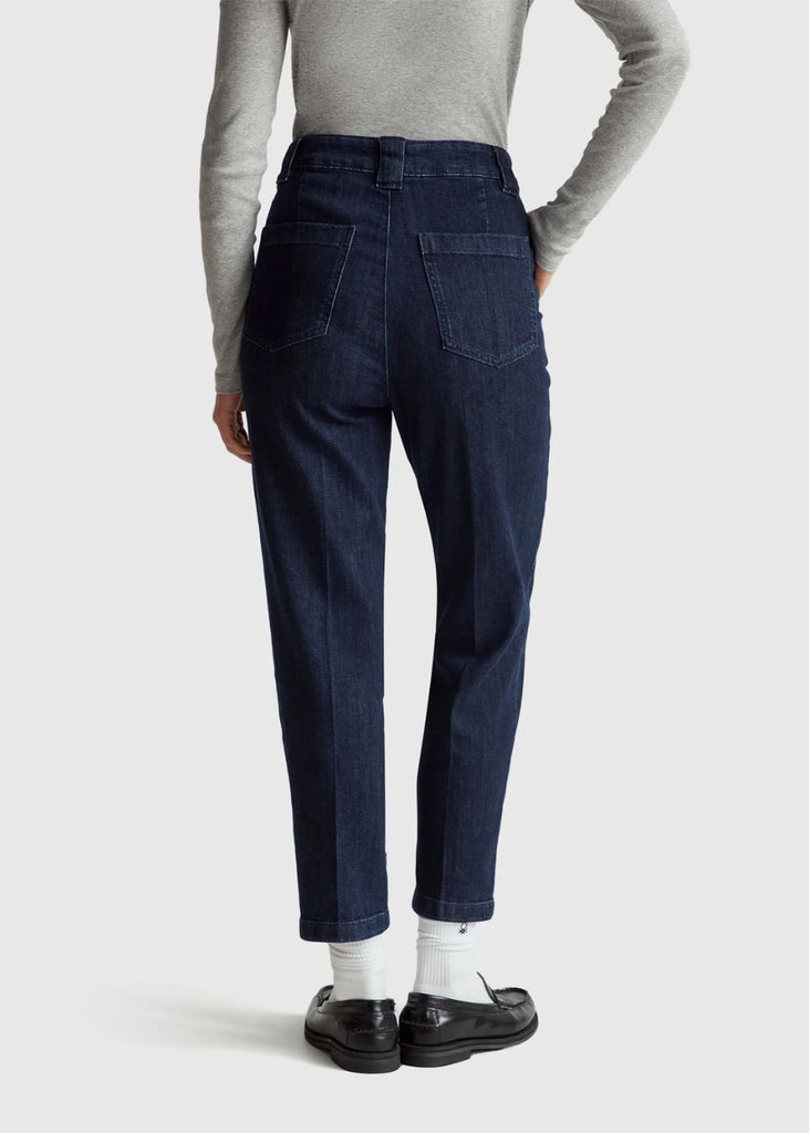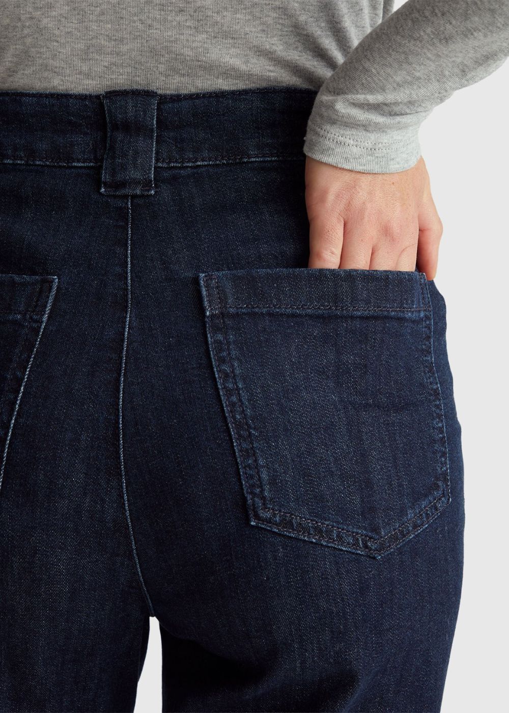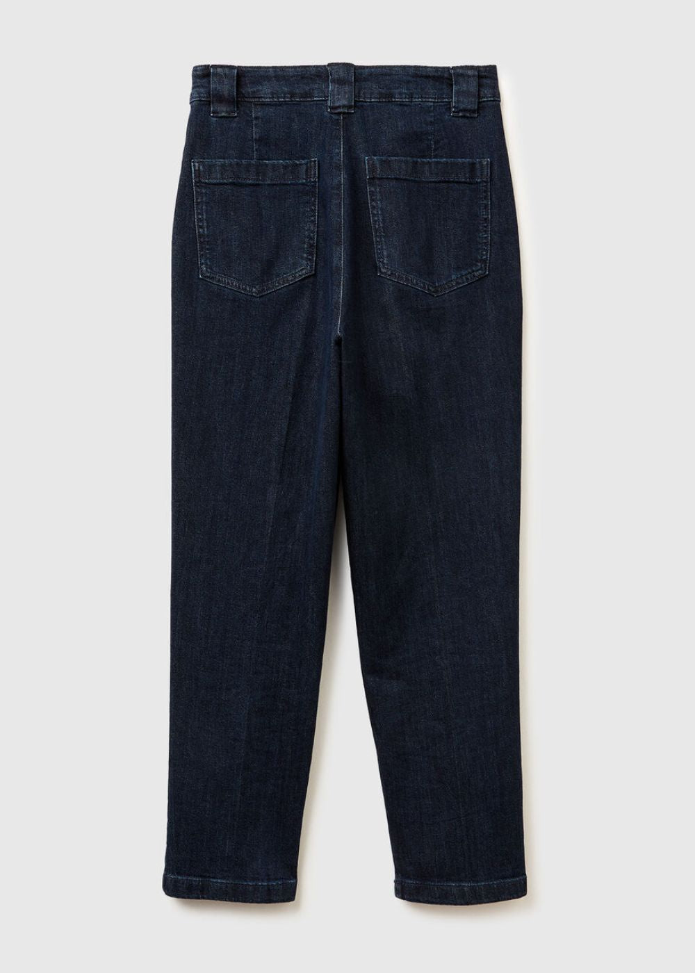Long chino-style trousers in stretch cotton denim. Waist with zip and button opening, front pockets and welt pockets on the back. This garment is made with at least 20% RCS certified recycled cotton. CERTIFIED BY ICEA - ICEA - TX - 611. Products certified to the Recycled Claim Standard (RCS) contain recycled content that has been independently verified at every stage of the supply chain, from the recycling to the finished product.
