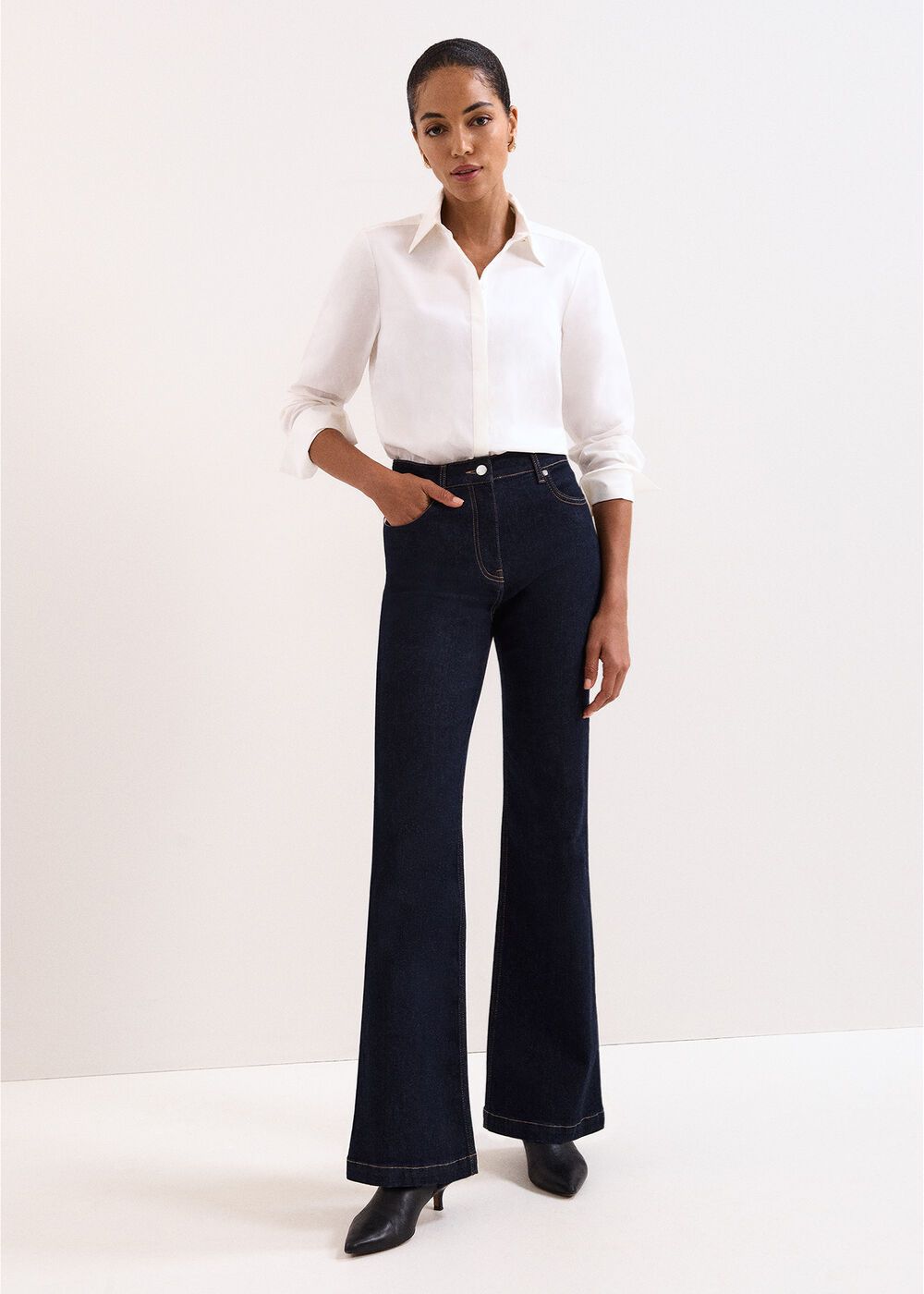 In a new dark wash that will work all year round our Olivia jeans will become a staple in your denim collection. Designed to allow for a subtle stretch, they feature a high waisted cut with a signature bootcut flare. They’re the perfect style to pair with your favourite knit jumpers this season.
