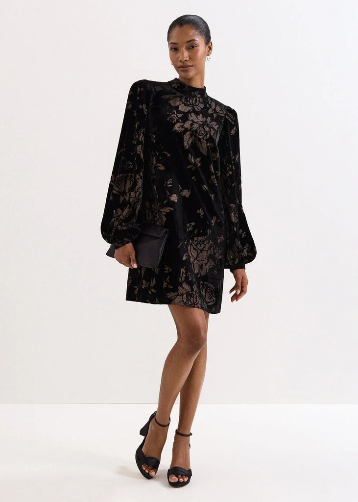 Phase Eight Ambrose Black Velvet Lattice Mini Dress