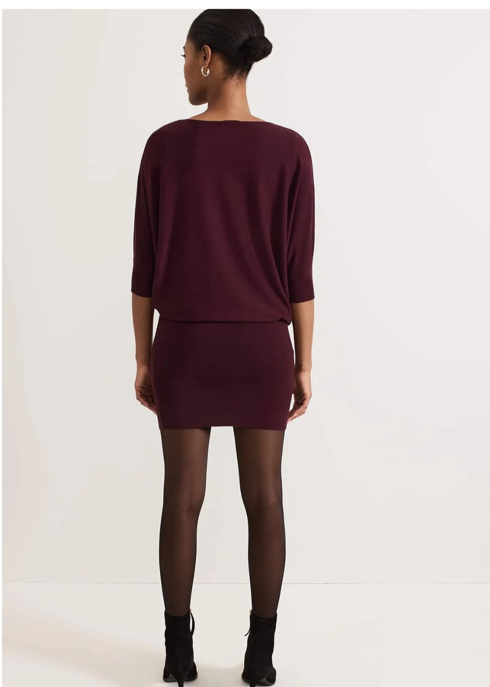Designed with a ribbed bodycon skirt and a relaxed fitting jumper top, our knitted Becca dress features cropped sleeves and a feminine slash neck. Pair with your favourite pair of boots for an elegant style that is the perfect addition to your capsule wardrobe.