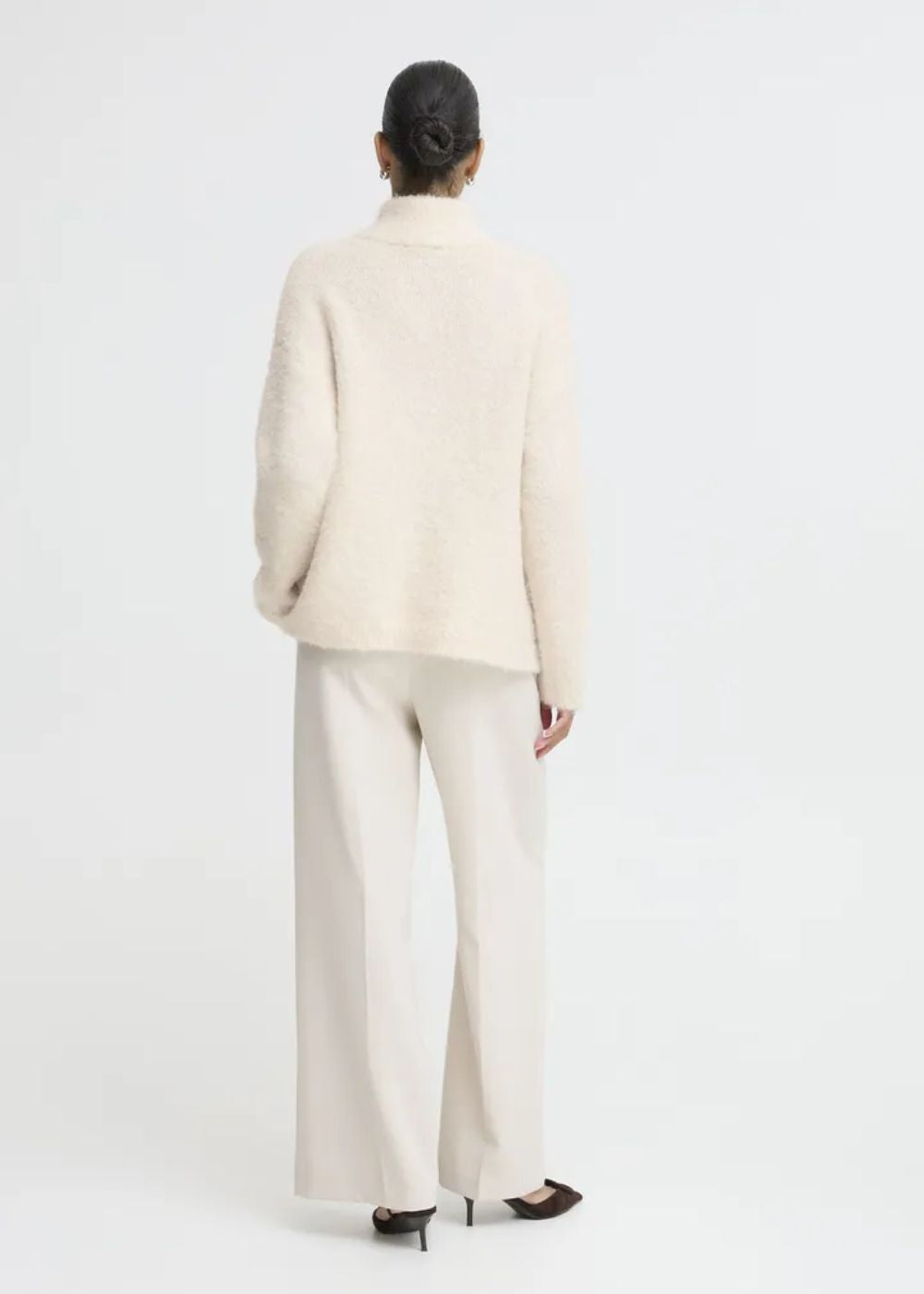 The BYOMANTA HALFZIP JUMPER combines timeless elegance with effortless comfort. Crafted from a soft knit fabric, this loose-fitting jumper features long sleeves and a hip-length cut, offering a refined silhouette that drapes beautifully. The half-zip detail adds a modern touch, making it a versatile piece that transitions seamlessly from relaxed days to polished outings. Elevate your wardrobe with this sophisticated essential designed for both style and ease.