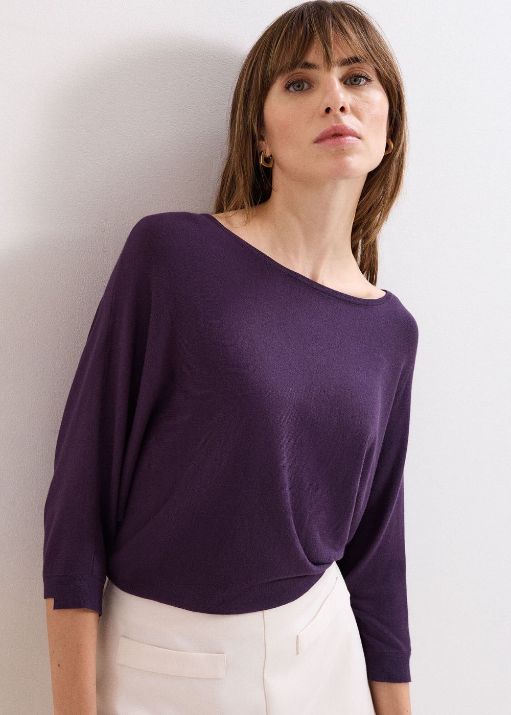 our favourite jumper has had a refresh, perfect for transitioning into the new season. Now in a rich plum shade, our Cristine jumper features a modern slashed neckline and batwing ¾ length sleeves. Designed to be a versatile staple, wear with your favourite smart trousers for an elevated everyday look.