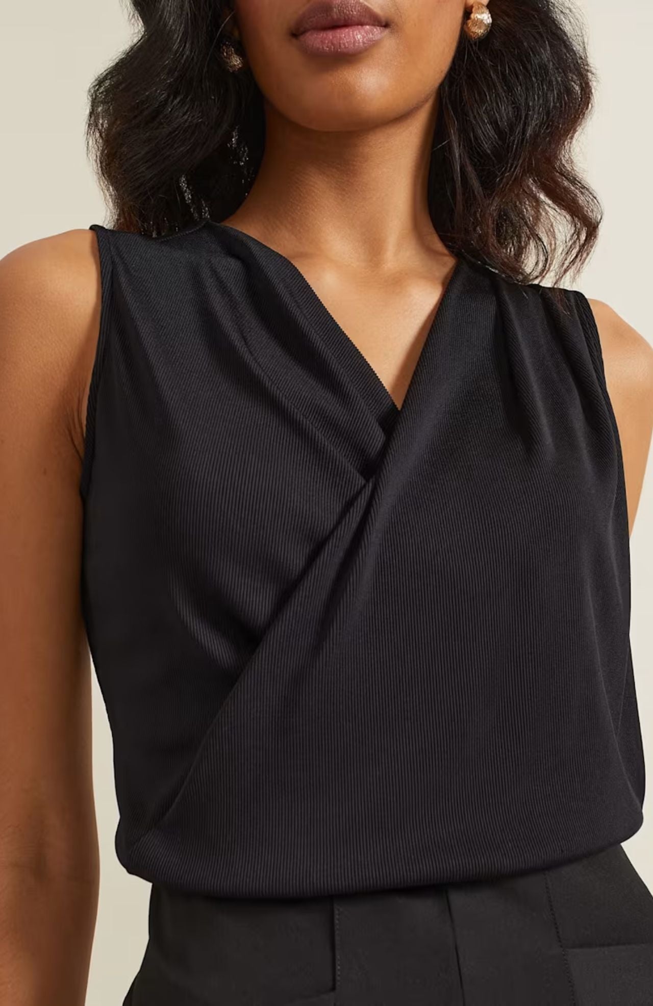 Phase Eight Sutton Sleeveless Drape Rib Top Black