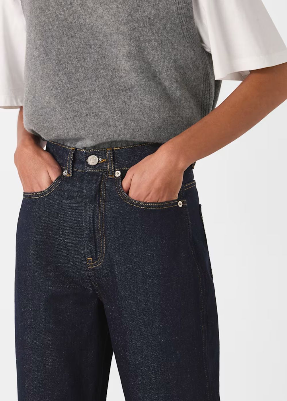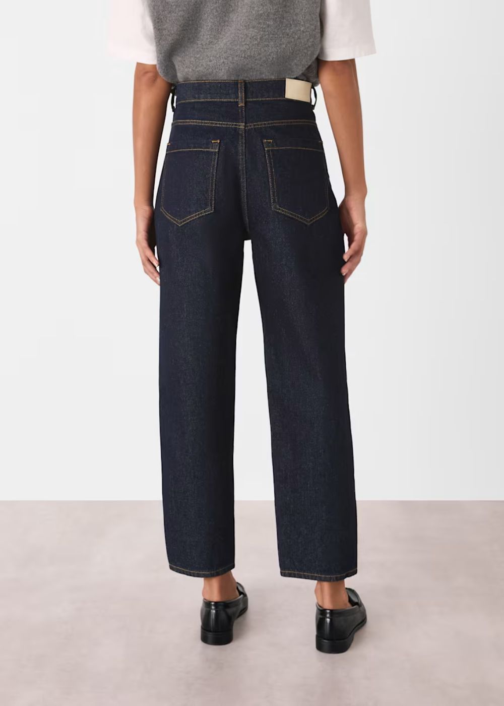 Cut from authentic denim, these jeans sit high on the waist and have an exaggerated barrel-leg silhouette that falls at the ankle. We love wearing ours with everything from modern trainers to heeled ankle boots. This is a non-stretch jean and we'd recommend taking that in consideration when choosing your size.