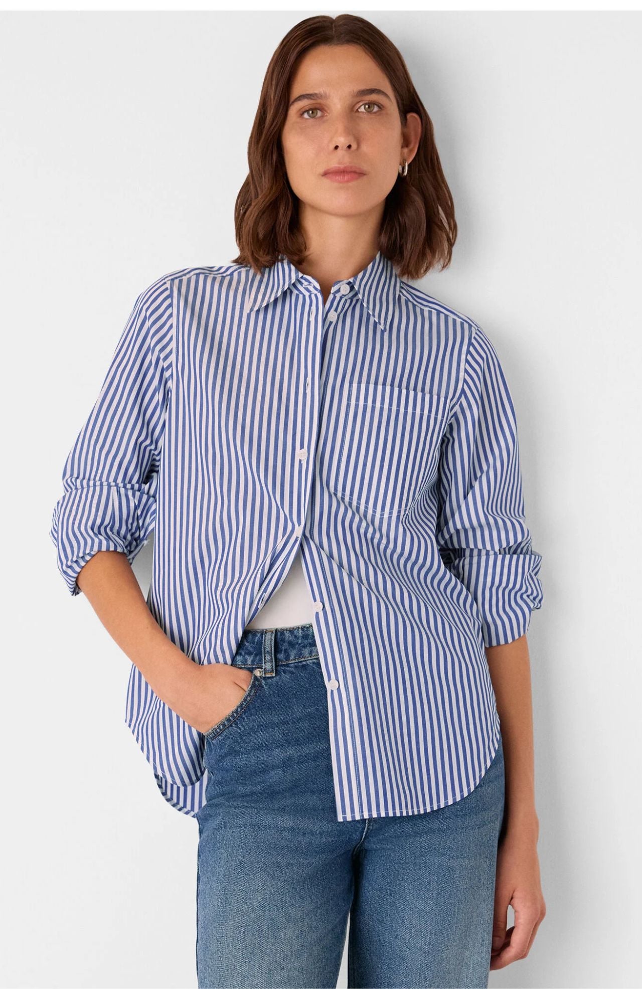 A striped shirt is a modern wardrobe favourite, bringing an effortless touch to both casual and refined looks. Our Relaxed Fit Stripe Shirt is a case in point; it’s cut in a relaxed silhouette with vertical blue and white stripes and a front chest pocket, pairing seamlessly with everything from classic denim to tailored trousers.