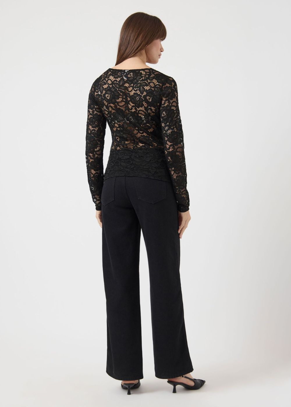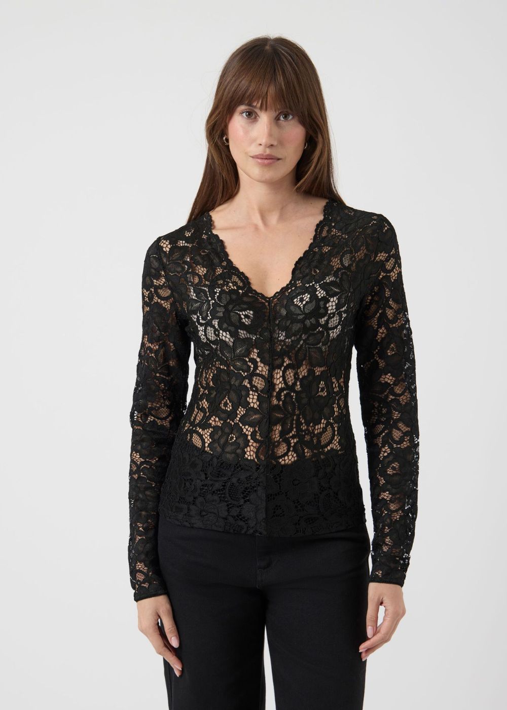 Elevate your wardrobe with this slim-fit blouse crafted from delicate lace featuring intricate feminine patterns. The elegant V-neckline and long sleeves combine to create a refined silhouette that enhances your natural grace. Perfect for layering or wearing alone, this timeless piece adds a touch of sophistication to any ensemble.