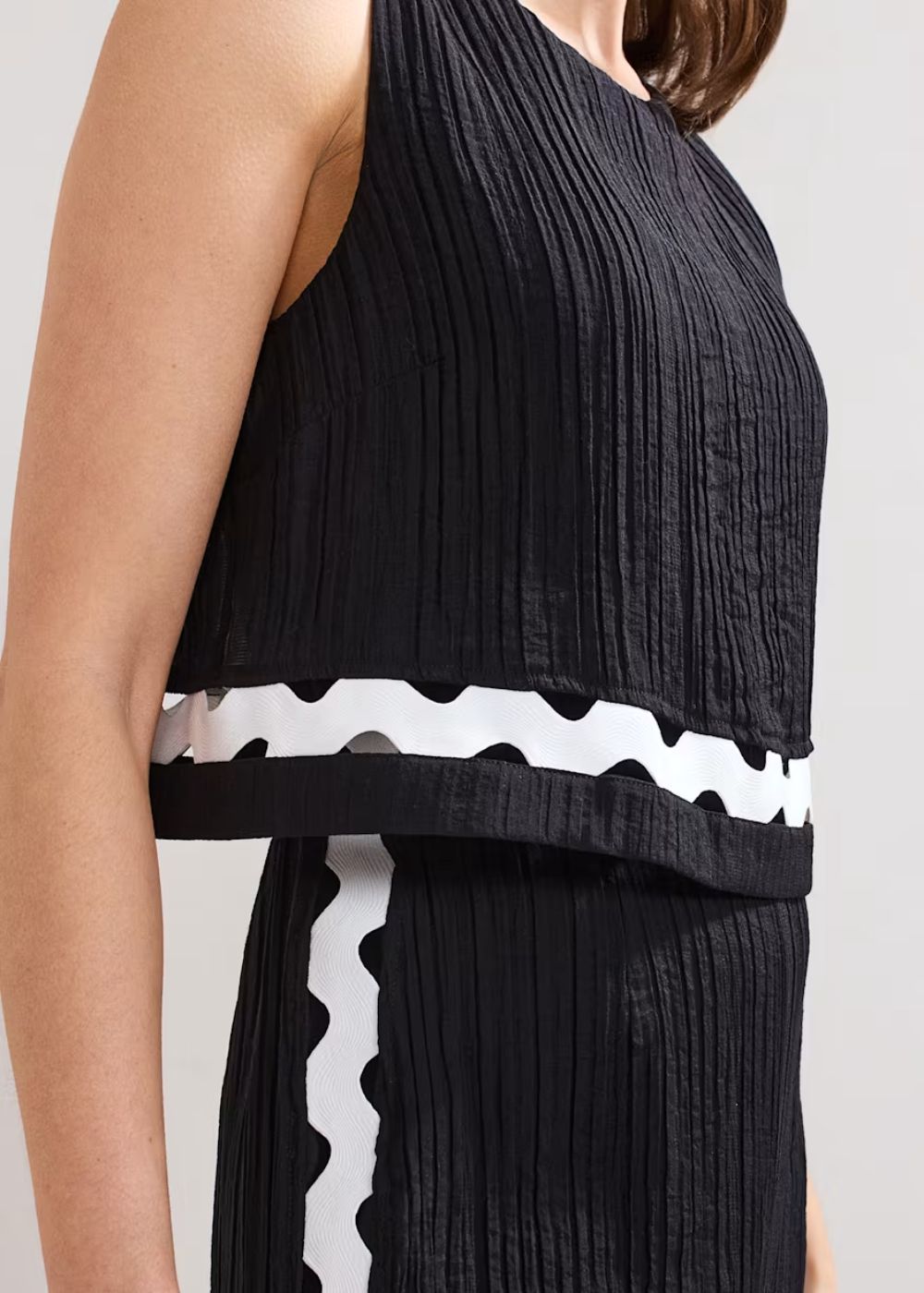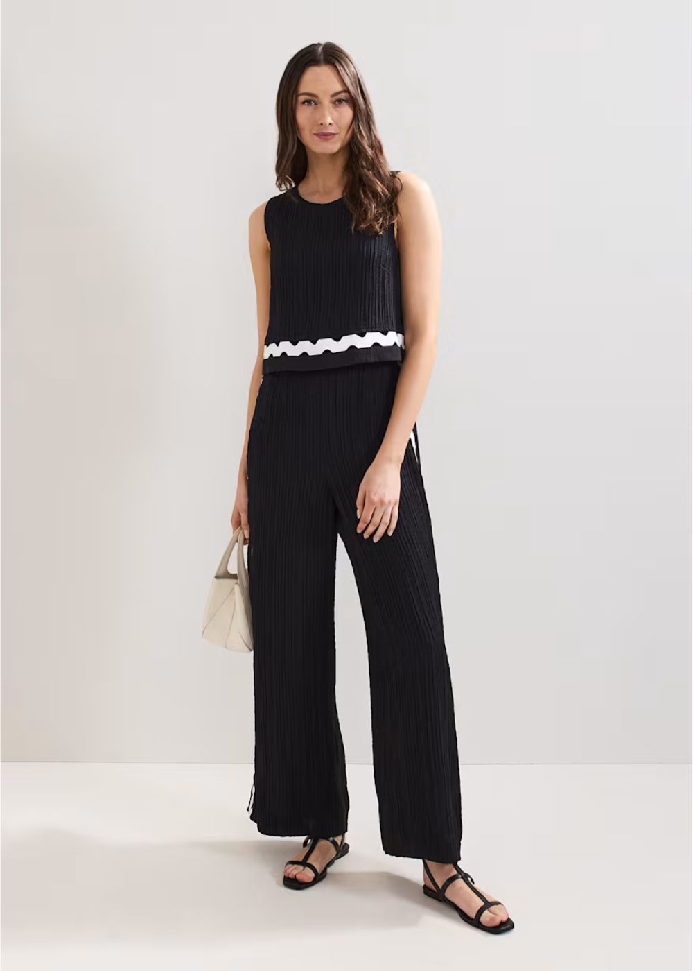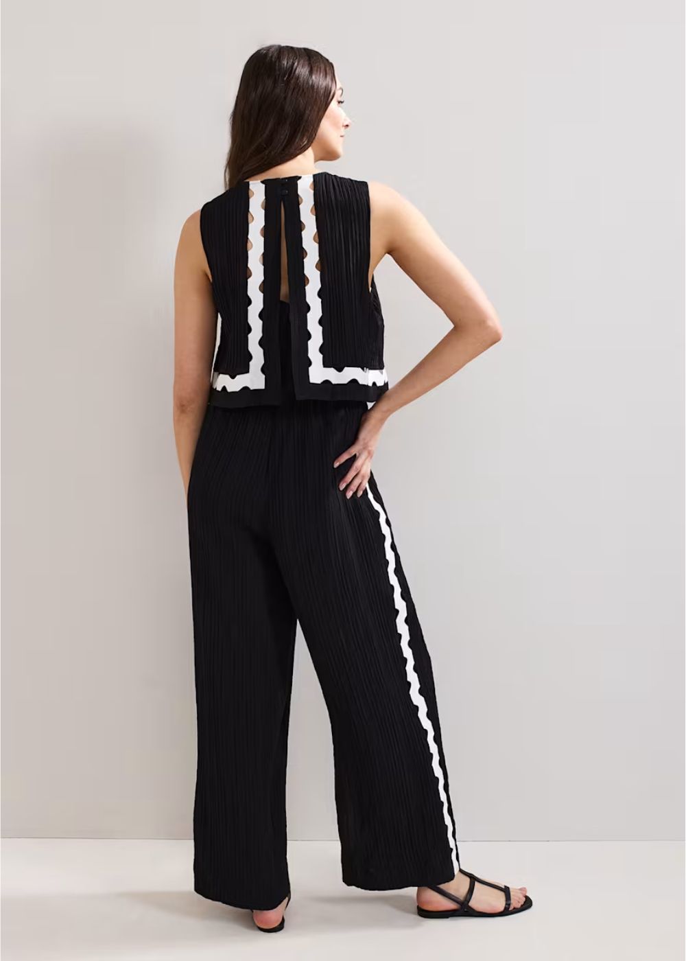 Embrace effortless dressing with our Audrey jumpsuit. Giving the illusion of a chic co-ord this simple but stylish piece is finished with contrasting cutwork detailing for a modern edge. Subtle pleating throughout and the wide leg silhouette create an easy to wear everyday style for summer.