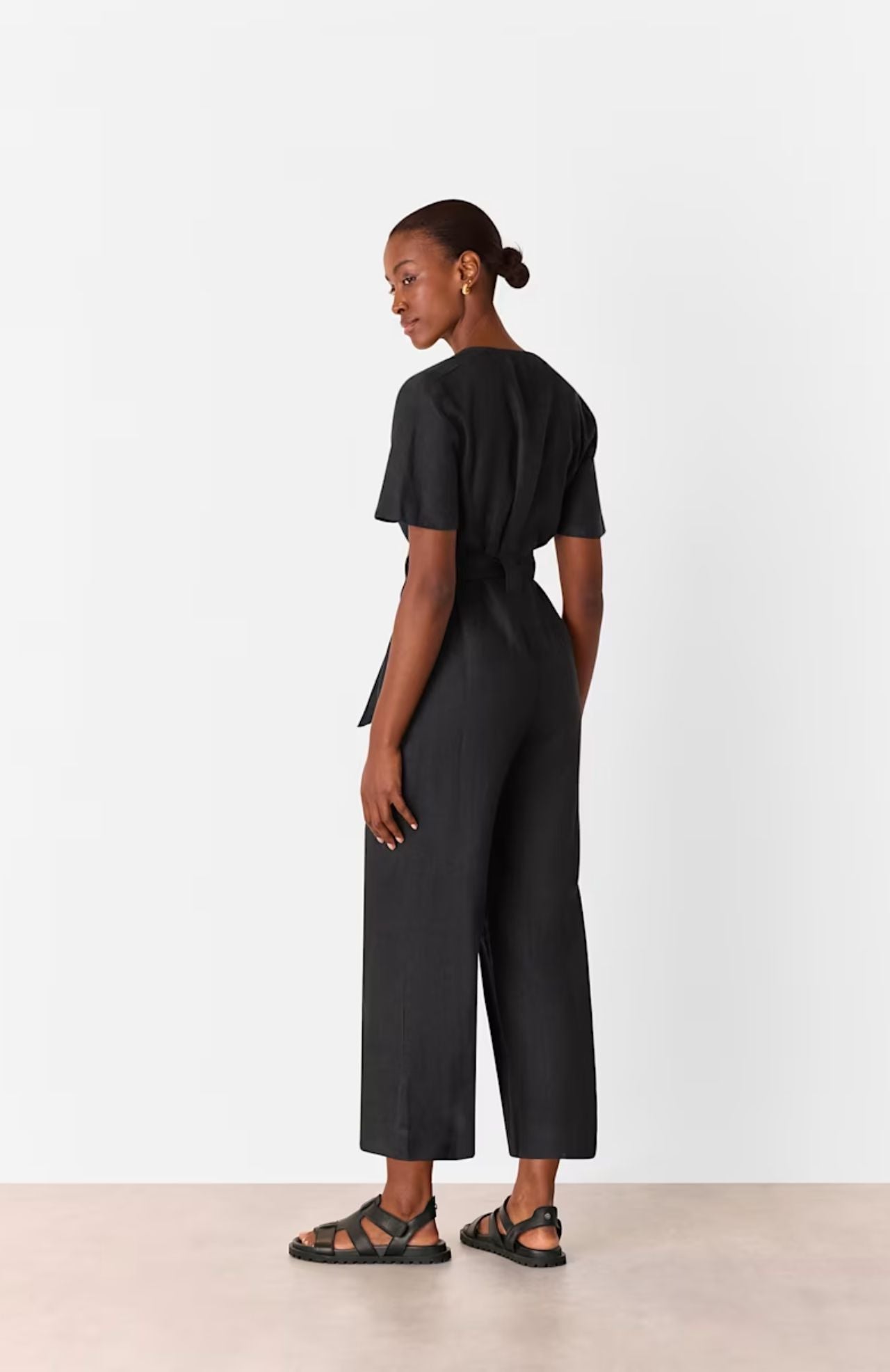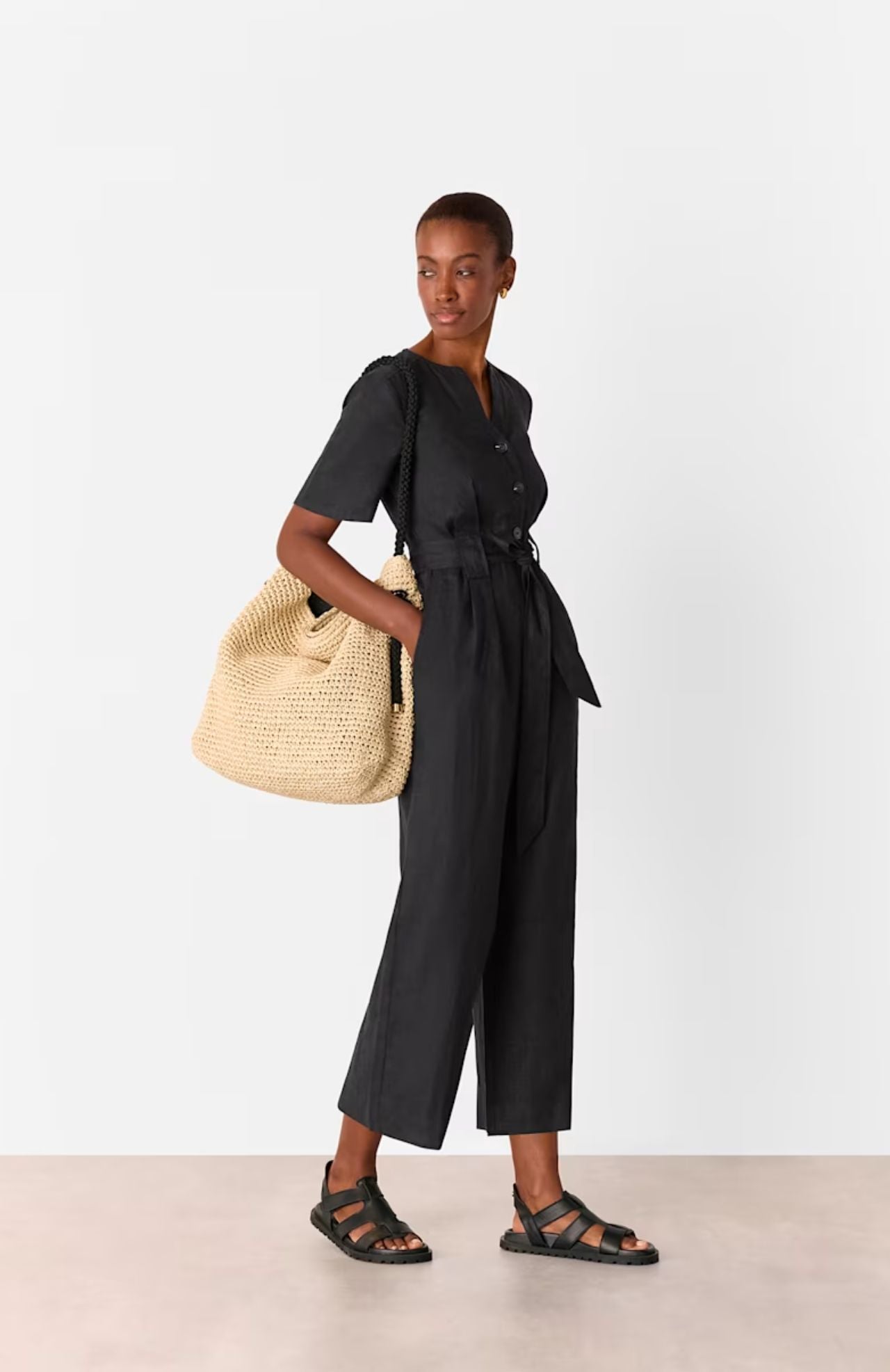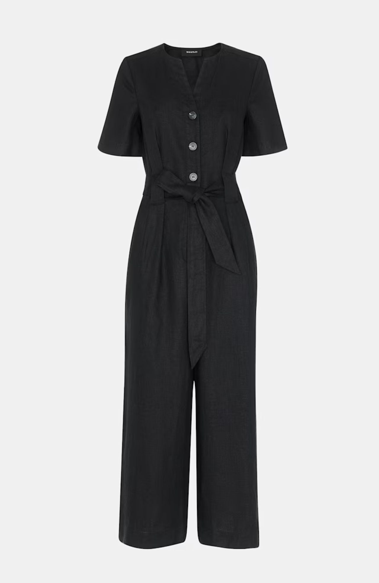 Whistles Black Fiona Linen Button Jumpsuit