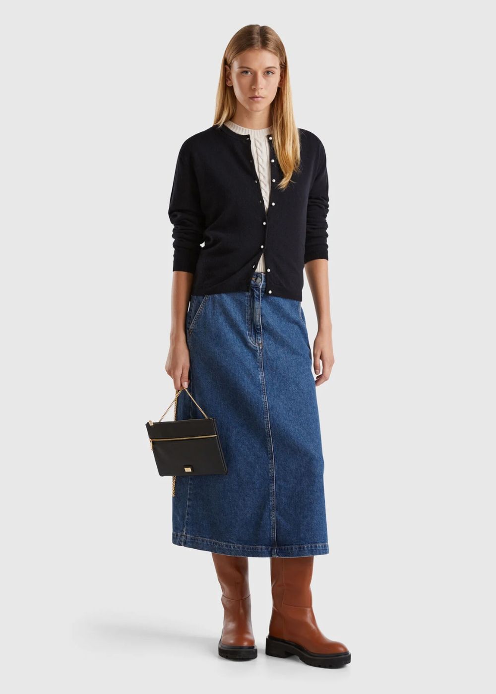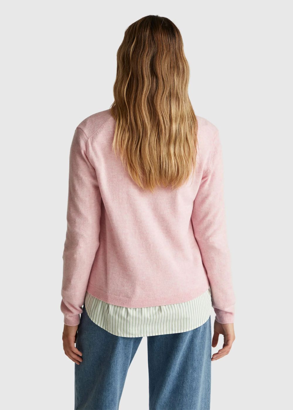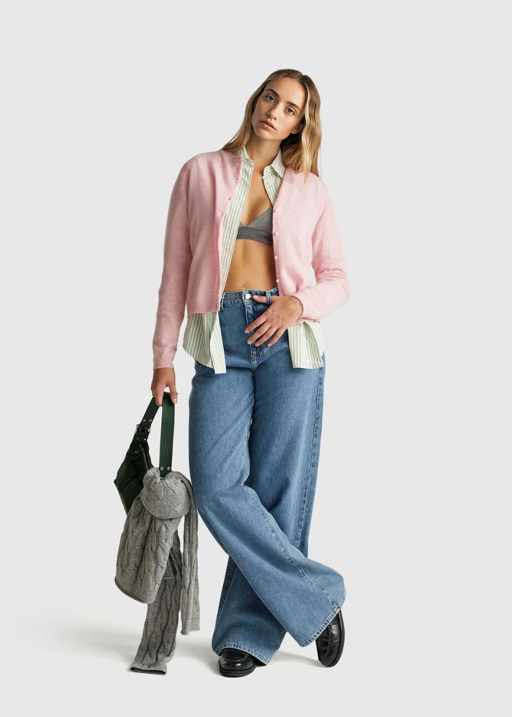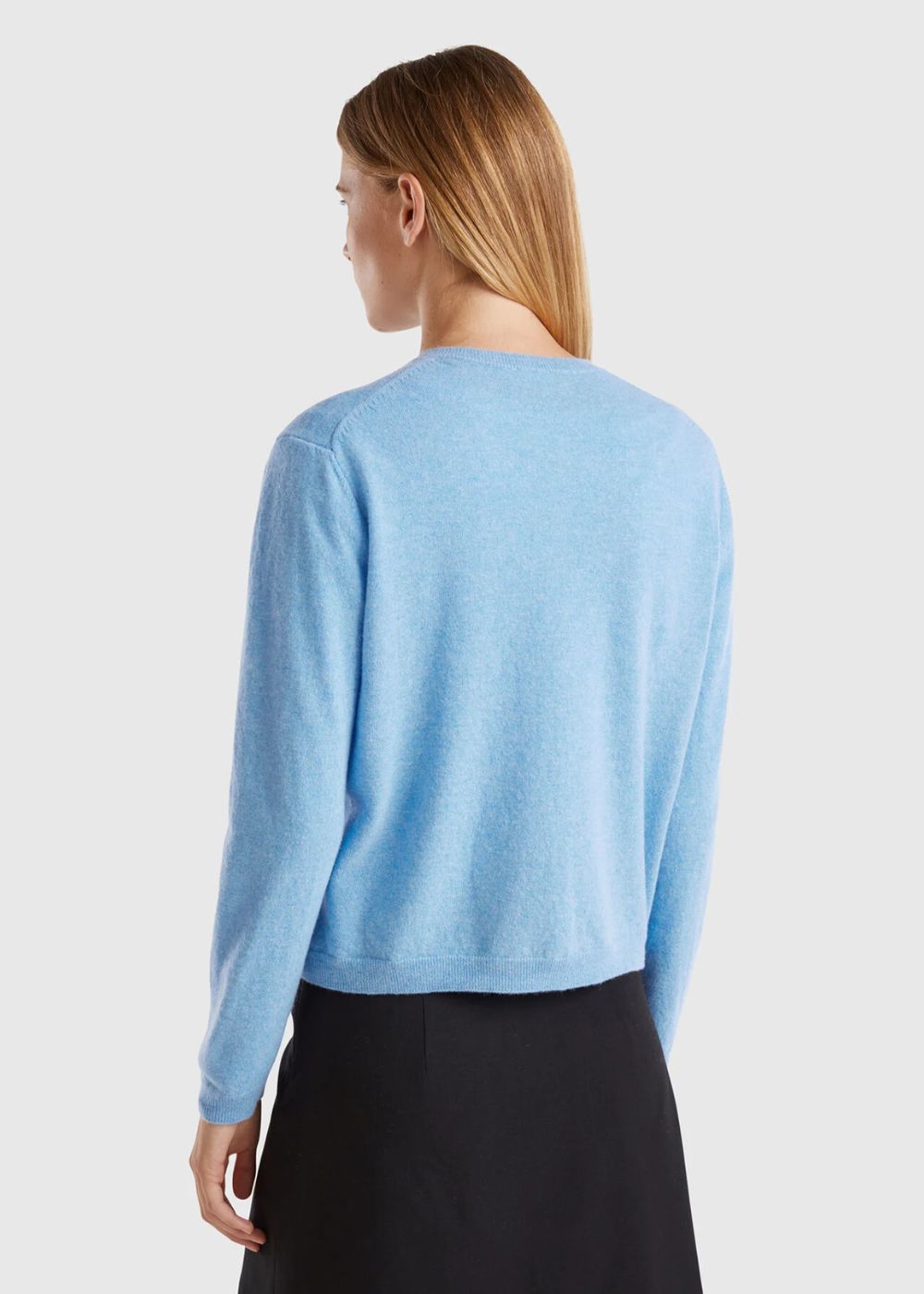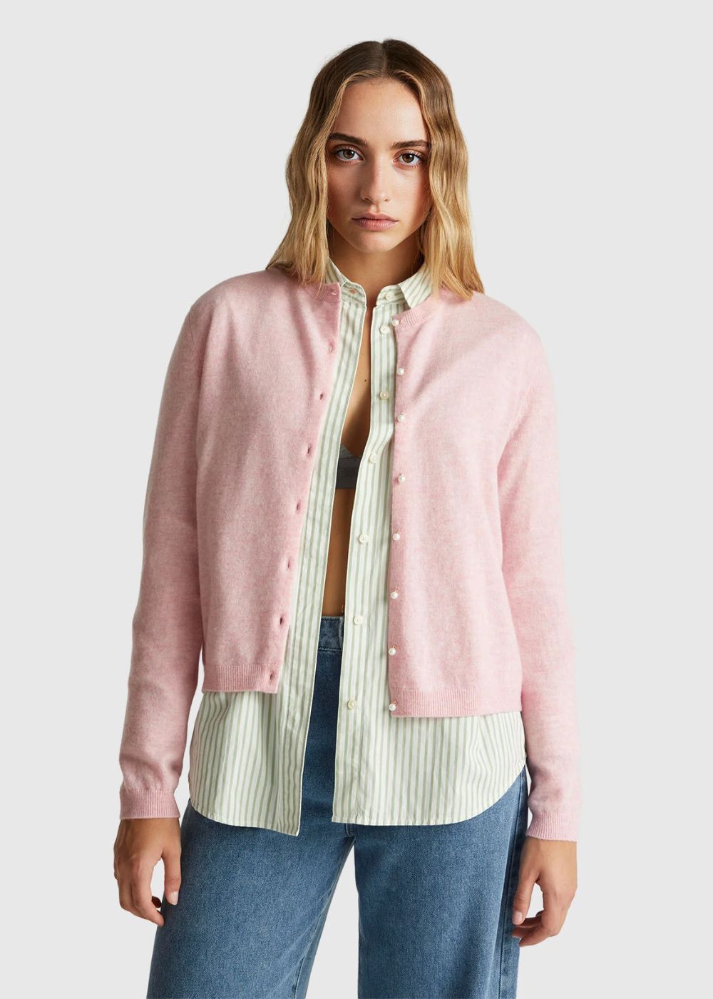 Cardigan in pure Merino wool, warm, light and pleasant to the touch. Regular fit with round neck and long sleeves. Front opening with pearl-look buttons. The presence of the Woolmark logo guarantees the high quality of the garments through the application and monitoring of specific standards in the production of wool, from breeding to the final product.