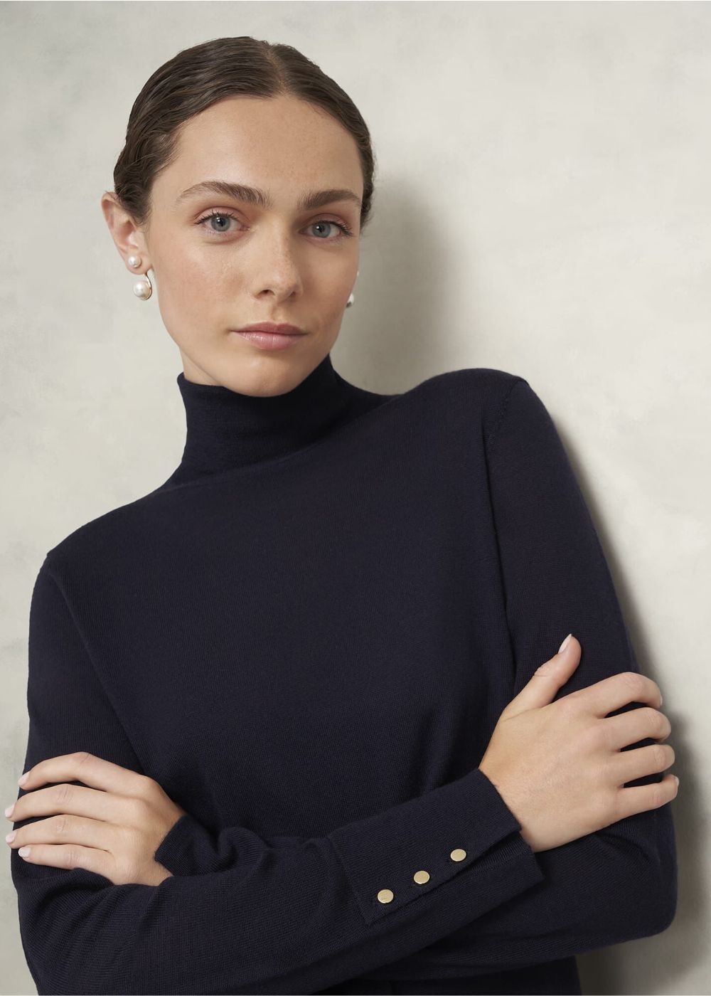 A foundation piece. Made from irresistibly soft Merino wool, the Lara roll neck jumper is the layering piece your seasonal wardrobe needs.