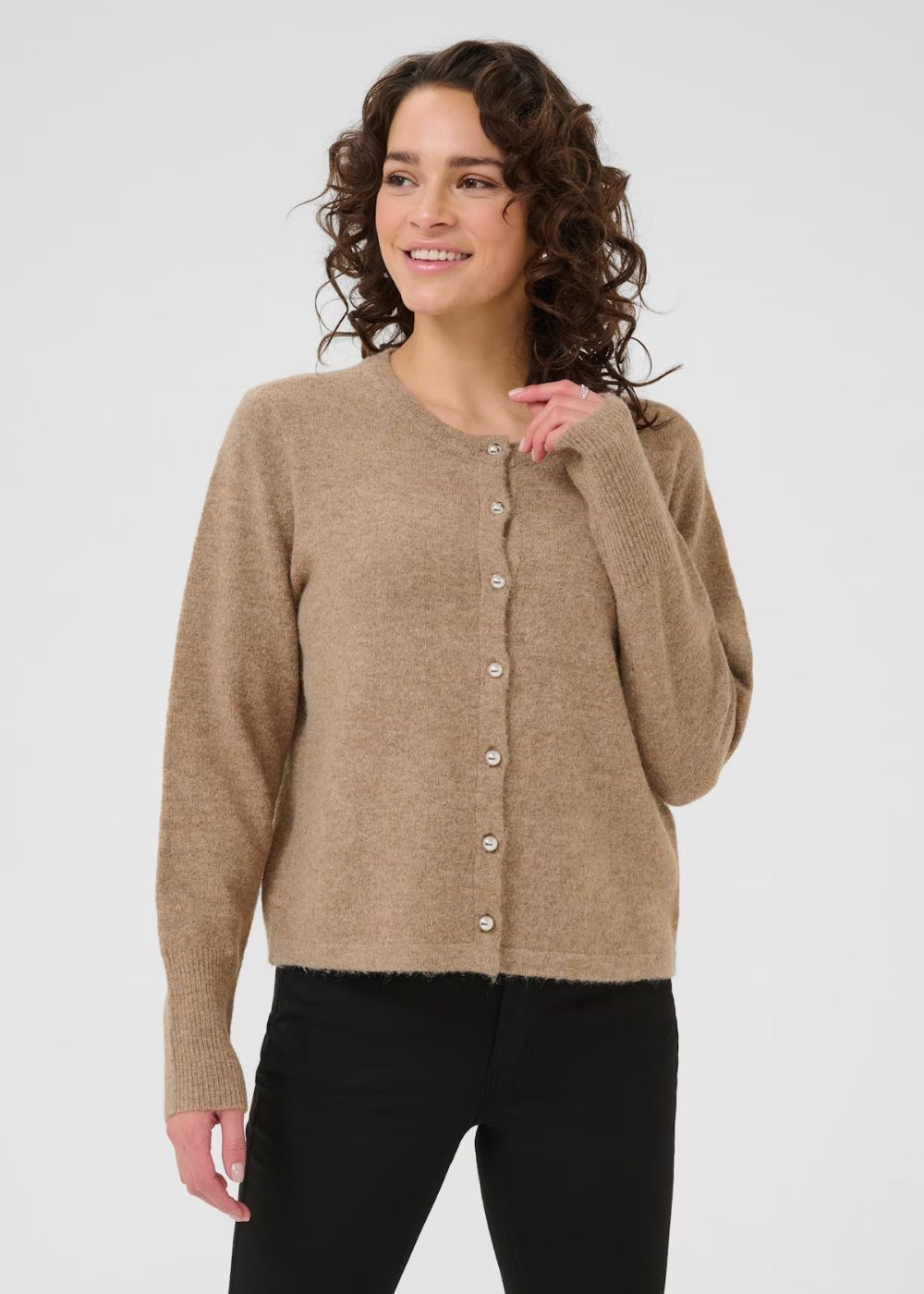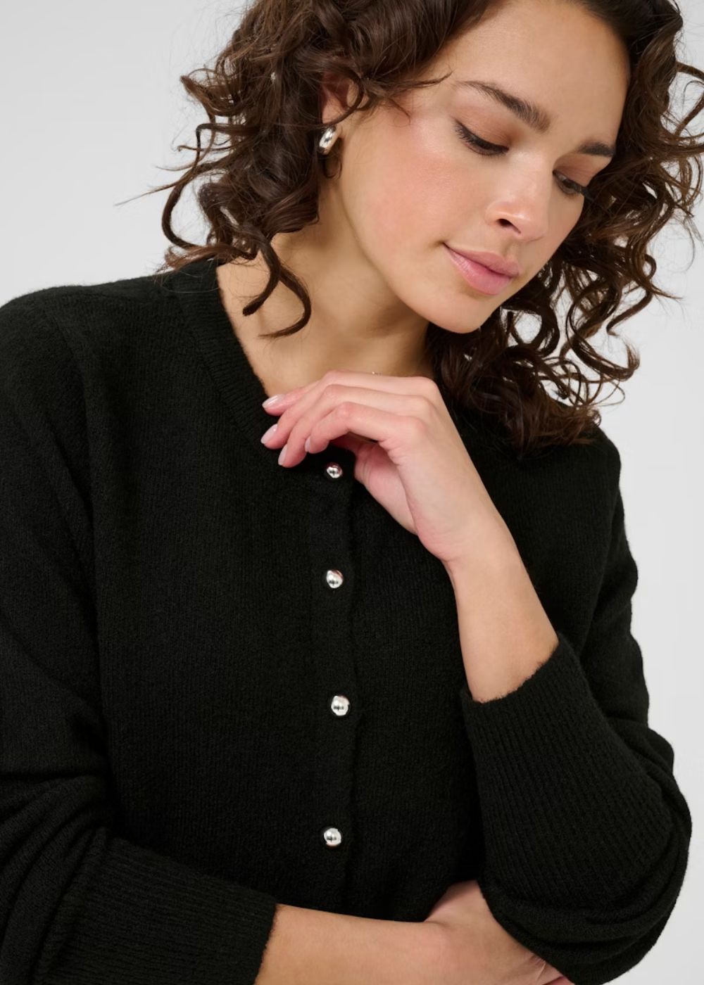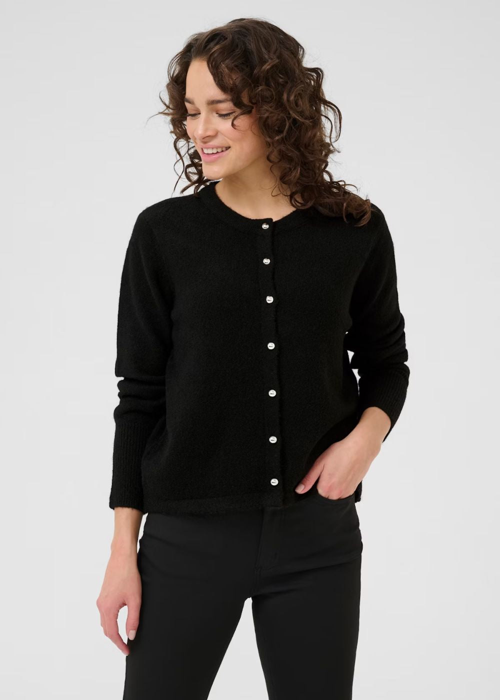 Cardigan with a regular fit, round neckline, and button front closure. Long sleeves and ribbed cuffs provide comfort and timeless style. Ideal for layering in both casual and office looks.