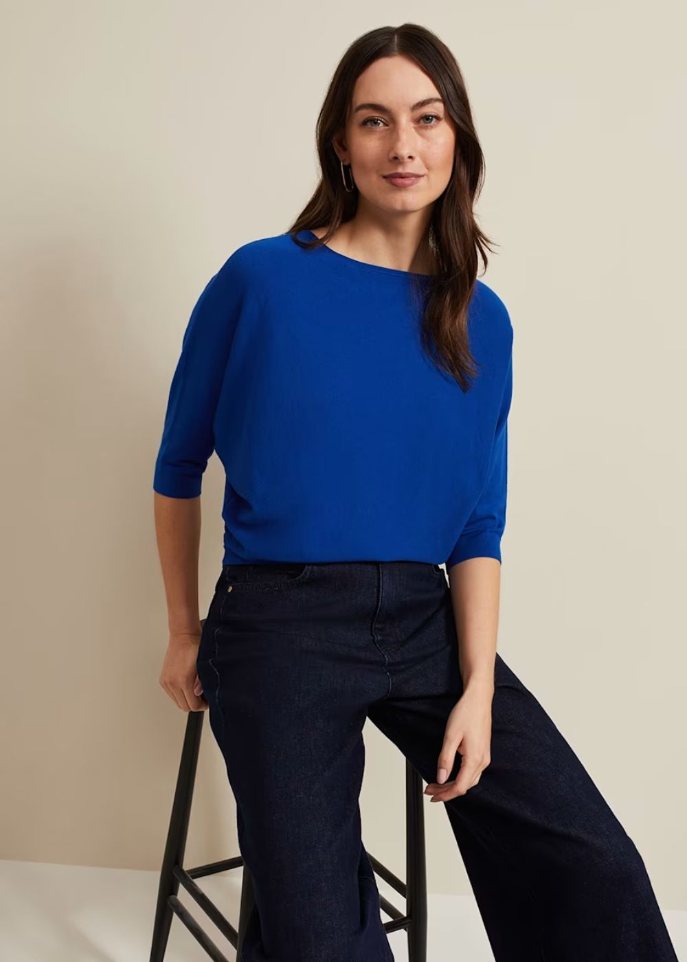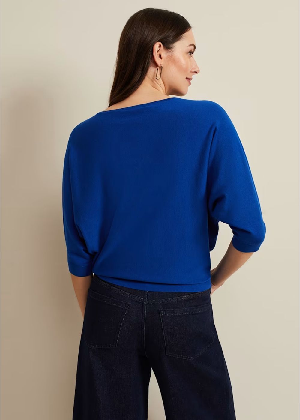 A relaxed fit fine knit jumper designed with batwing 3/4 length sleeves and a slash neckline. This style is perfect to wear with any of your separates.