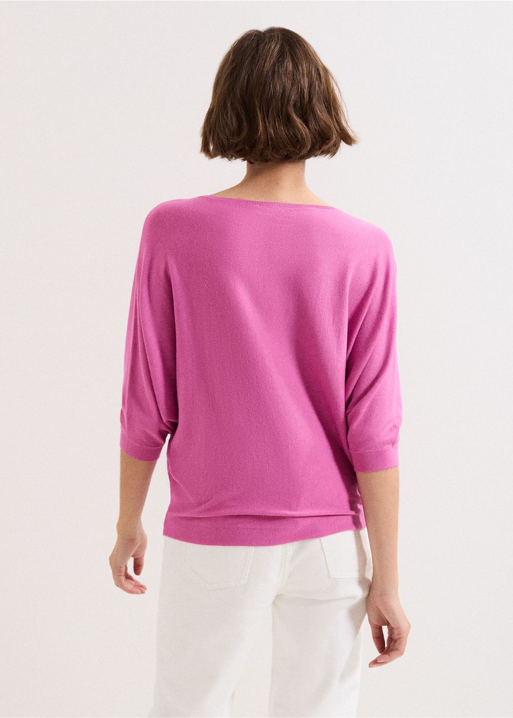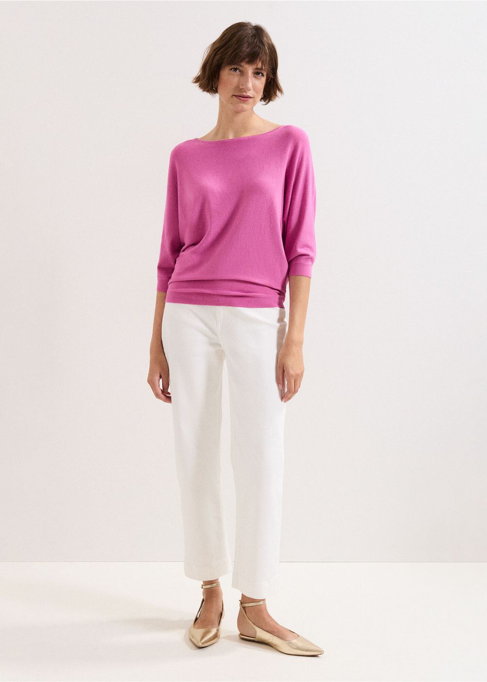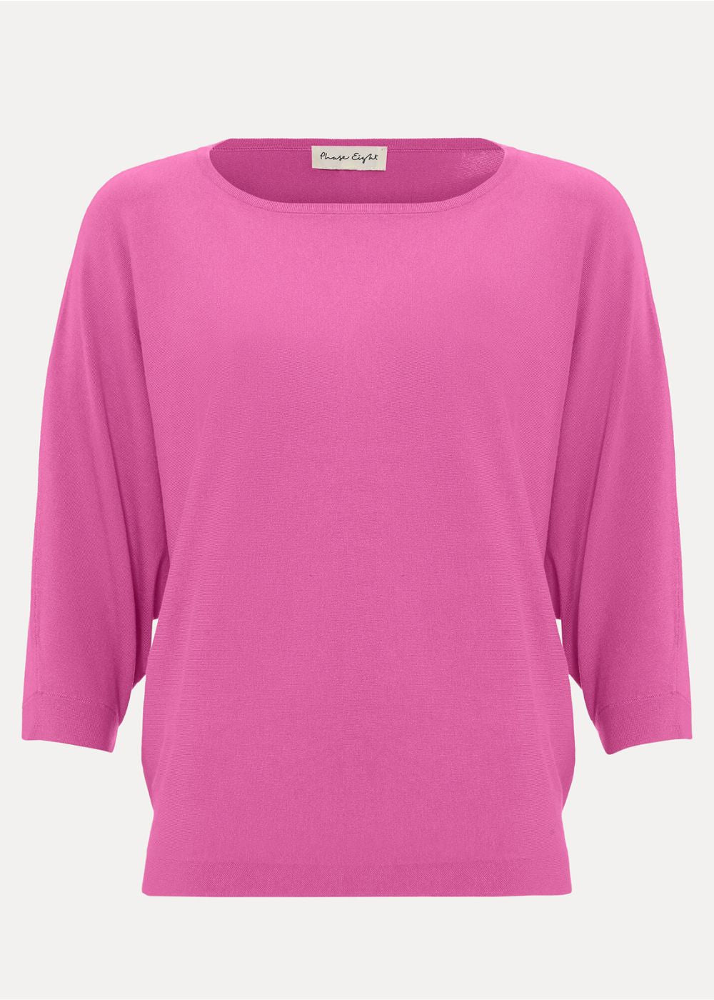 Now available in a feminine, light fuchsia pink, our Cristine knit is a bestseller for a reason. Featuring a modern slashed neckline and batwing ¾ length sleeve. This jumper is designed to be an elevated staple, perfect for wearing with your go-to jeans for an easy, everyday look.
