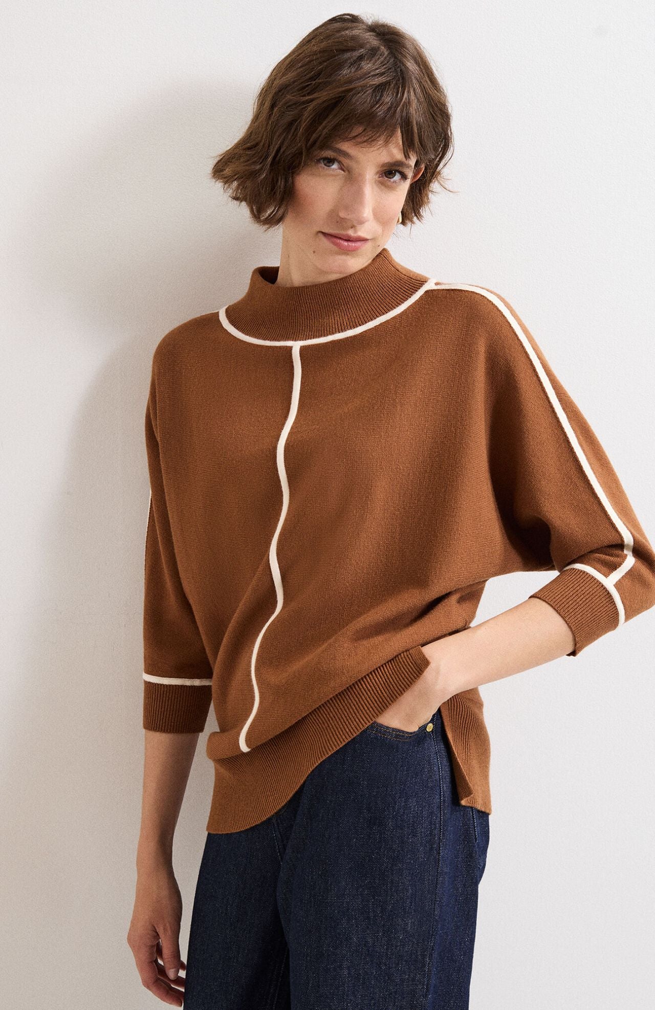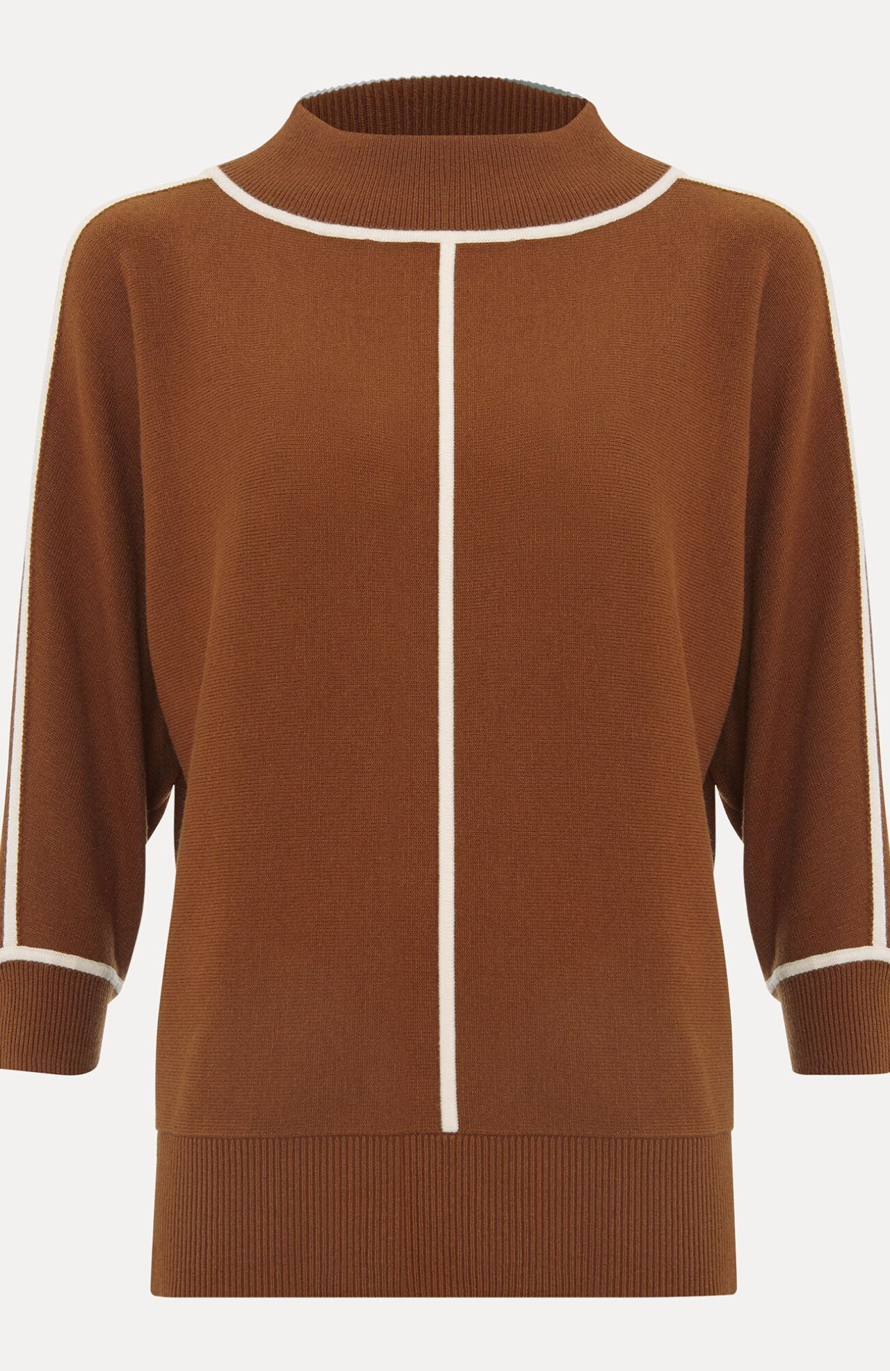Our bestselling design is now available in a brand-new shade. Our cosy brown Hallie jumper features an elevated funnel neck, batwing sleeves and tipped cream detailing for contrast and added interest. For the perfect daytime look, pair with your favourite jeans and go-to boots.