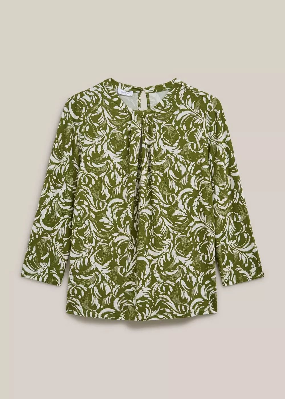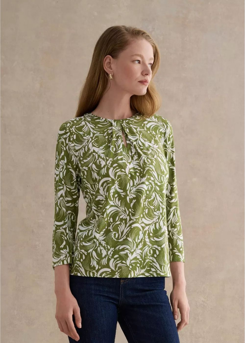 Refreshed this season with a botanical spin, the Julia printed top is a flexible foundation come work or weekend.