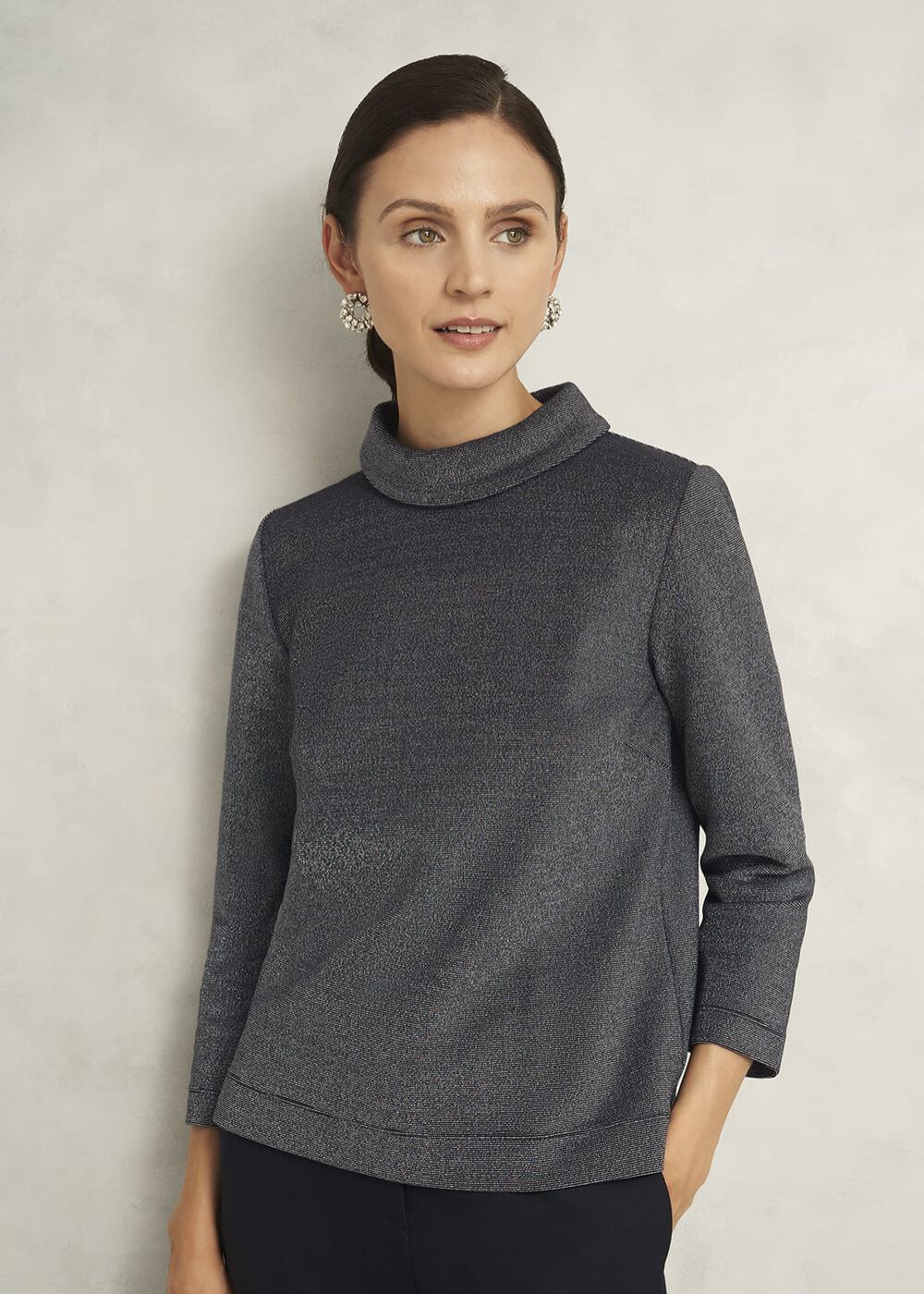Designed with festive spontaneity in mind, our Tali top fuses a metallic finish with a sartorial roll neck and three-quarter length sleeve.