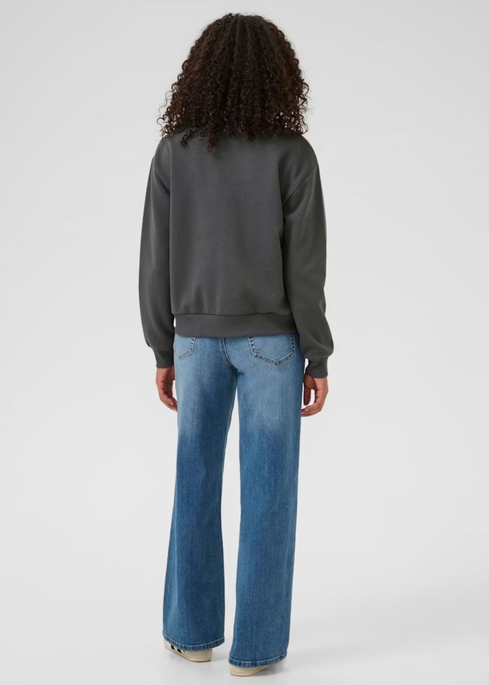 This relaxed-fit women's sweatshirt offers everyday comfort with its crew neckline and ribbed cuffs. The clean silhouette and statement front detail make it ideal for versatile casual wear across any season.