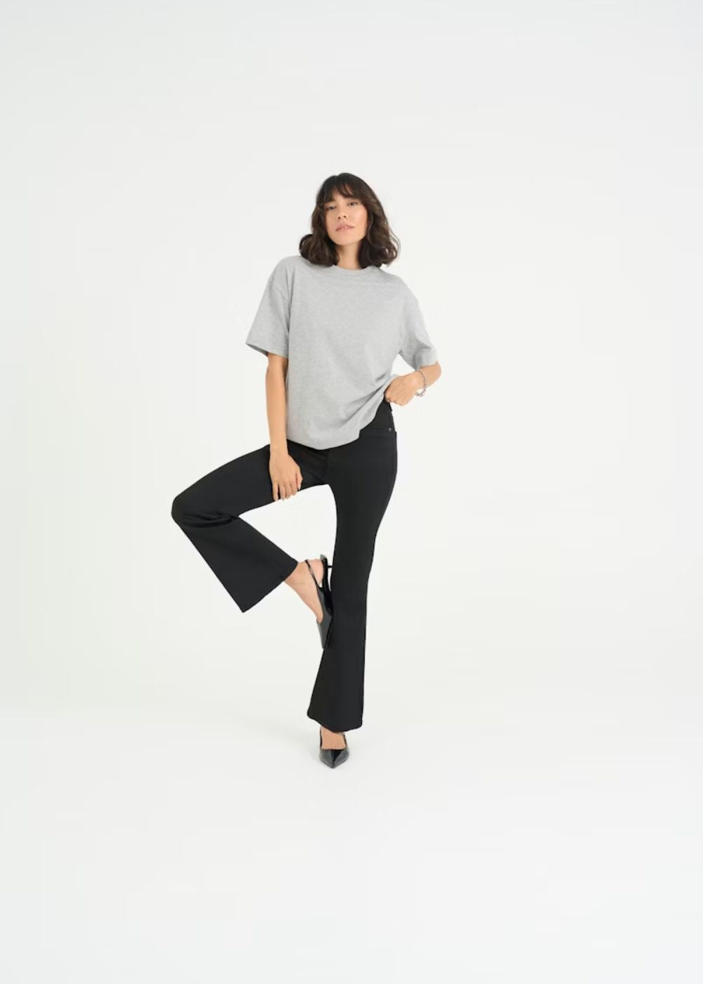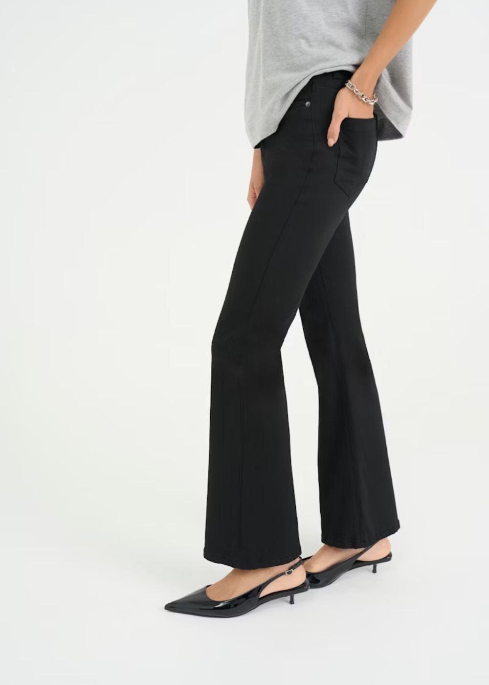 Flared jeans for women feature a flattering slim fit through the thighs, slight flare at the bottom, and classic five-pocket design for everyday comfort and style. Ideal for versatile outfit pairings and all-day wear.