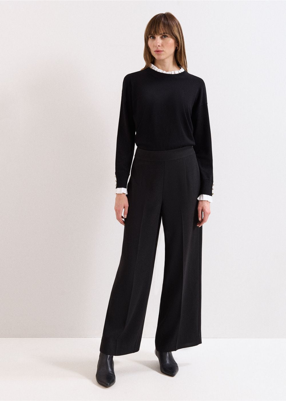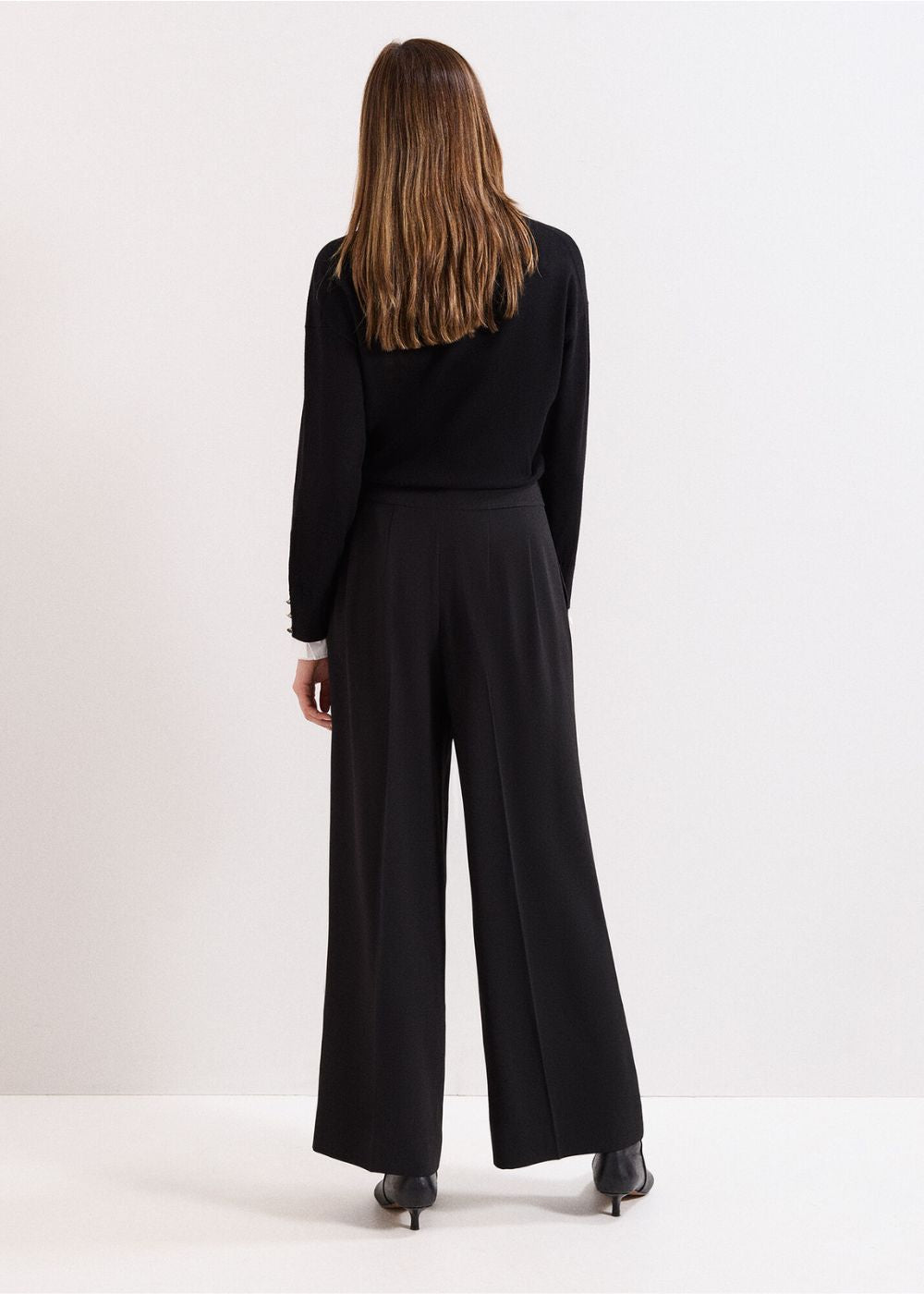 Every wardrobe needs a tailored black trouser. Ours are structured for a streamlined, flattering fit with a front pleats and concealed side zip. Falling to a wide leg silhouette they're designed for versatility and can be worn with both casual and evening outfits. For a contemporary feminine look style with our matching Vari waistcoat and feel instantly chic.