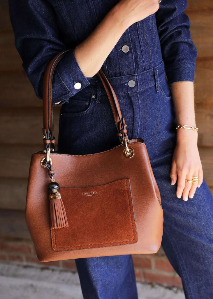 GALA-CROSSBODY TOTE - NAVY/TAN
