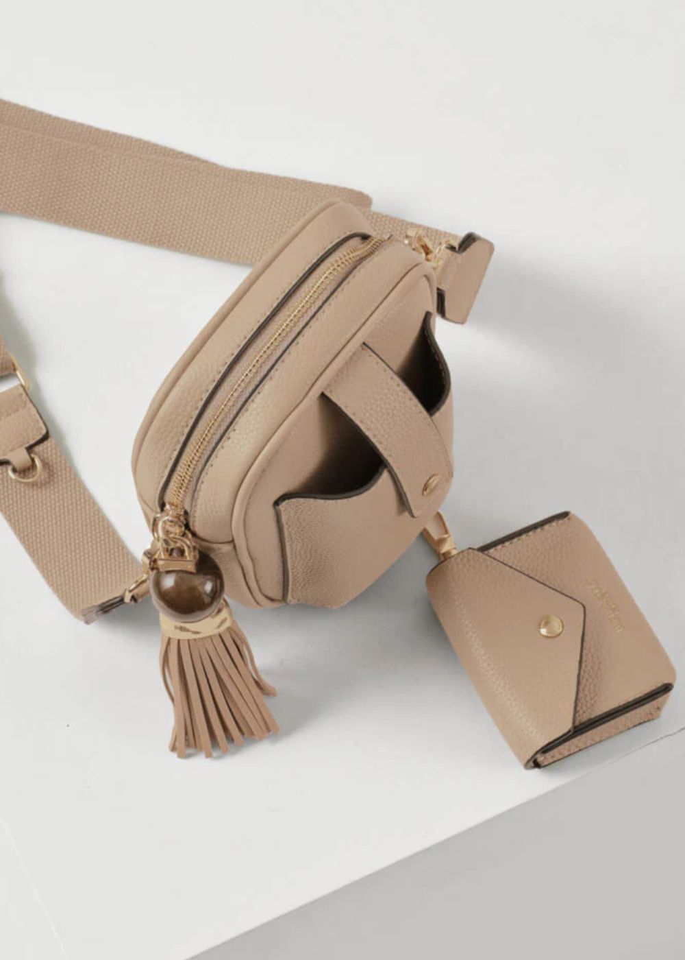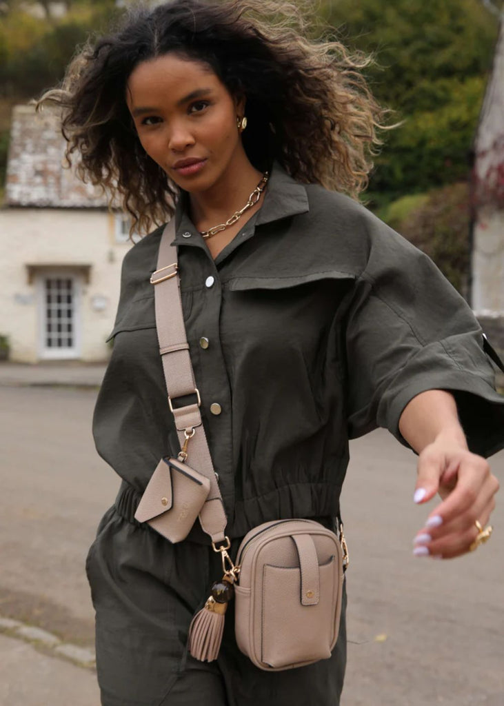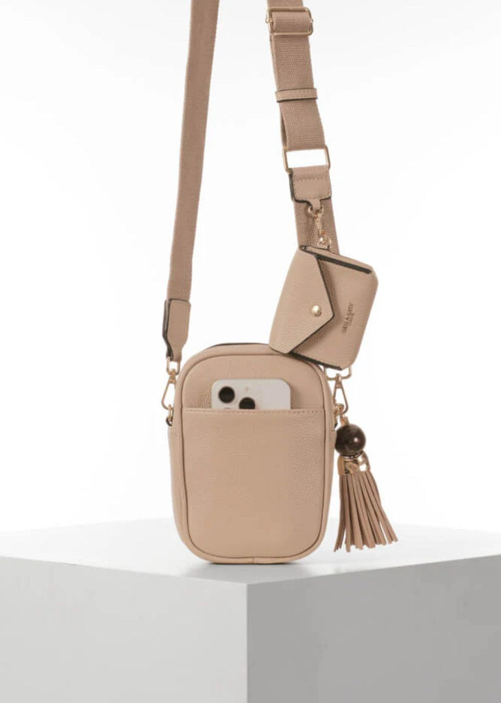 Elise is a portrait crossbody designed with style, versatility, and hands-free ease in mind. Back by popular demand, this compact camera bag silhouette is thoughtfully crafted with multiple compartments and pockets — perfect for keeping your essentials close during busy days or weekend adventures. Elise features our signature Thames Tassel charm and a handy front pocket sized for your phone. Her adjustable canvas strap is paired with clip-on charm Emmy, a miniature envelope purse ideal for storing keys, cards, or earbuds within easy reach.