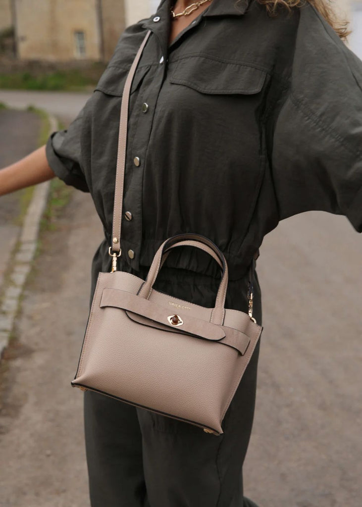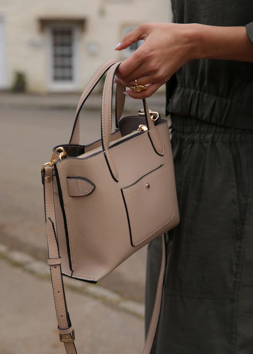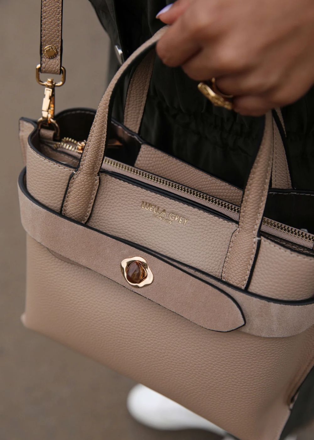 Oriel is a crossbody designed for style and functionality. Introducing the mini-me version of our best-selling Oriana Tote - style Oriel. As sophisticated and beautiful as her bigger sister, this cute tote has all the detailing and carefully considered functionality of Oriana. Featuring an inner zip pocket for securing your valuables, large pockets either side for wallets and makeup and a back pocket for easy access. Oriel may be small but she is surprisingly roomy - choose to drape her on your arm, hold her in your hand with the grab handles or simply carry her across your body when you want to be hands-free. Oriel comes complete with a protective branded dustbag.