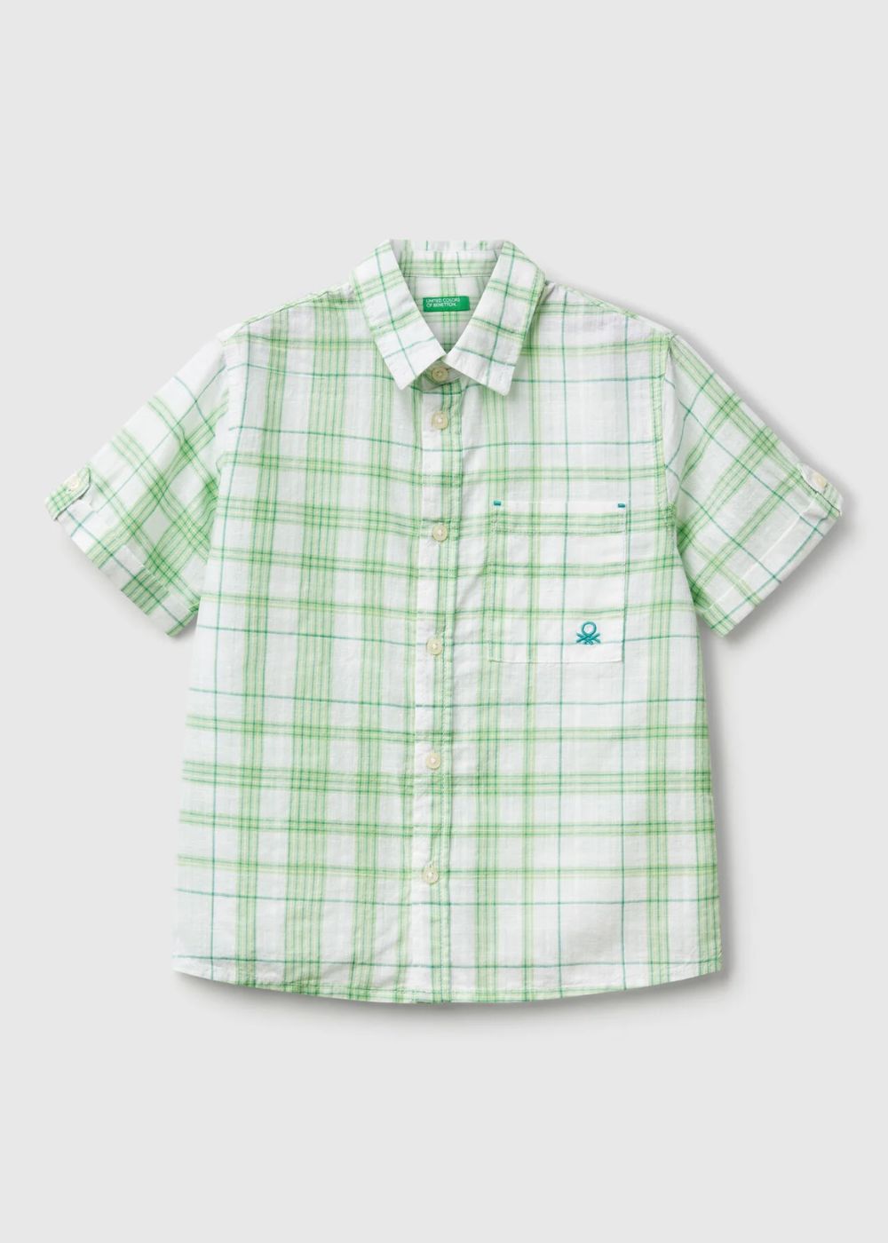 Yarn-dyed check shirt in pure cotton with neon details. Classic collar, short sleeve with turn-up and pocket on the left chest with embroidered logo. Front opening with buttons. Casual style for a garment that lends itself to multiple occasions of use.