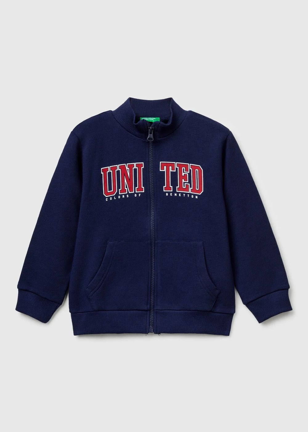 Long sleeve sweatshirt in organic cotton with a firm yet lightweight feel. Collar, practical zip opening, front patch pockets and front logo print. Wear it with a pair of jeans for an everyday look. This garment is made from 100% OCS certified organic cotton. CERTIFIED BY ICEA - ICEA - TX - 611. Products certified according to the Organic Content Standard (OCS) contain independently verified organic content at every stage of the supply chain, from the recycling to the finished product.