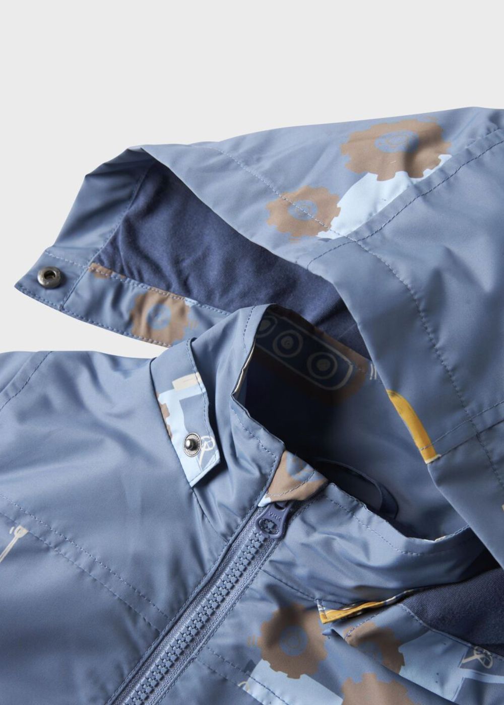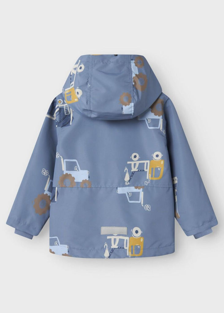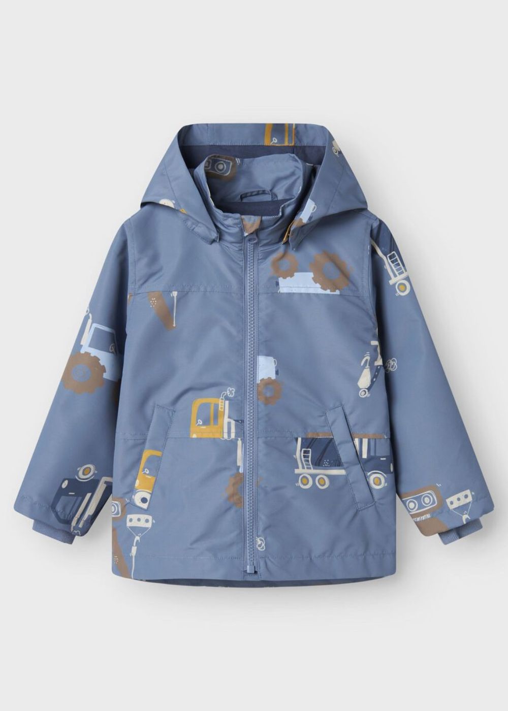This stylish jacket combines timeless design with practical features, perfect for keeping your child comfortable and safe throughout the seasons. Crafted from woven fabric with a subtle criss-cross texture, it offers a refined look enhanced by an all-over print. The detachable hood adds versatility and safety, while ribbed cuffs and a zip fastening ensure a secure fit. A front pocket provides convenient storage, and the soft polyester lining guarantees comfort.