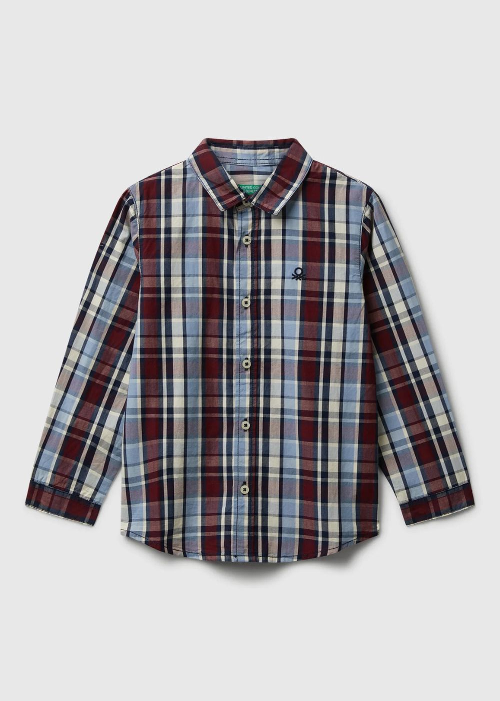 Long sleeve check shirt in yarn dyed pure cotton poplin. Classic collar, front buttoning and embroidered logo on left side. Perfect for all occasions.