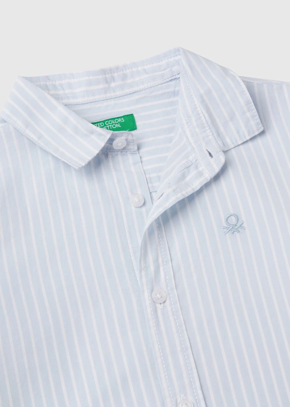 Long sleeve striped shirt in yarn dyed pure cotton poplin. Classic collar, front buttoning and embroidered logo on left side. Perfect for all occasions.