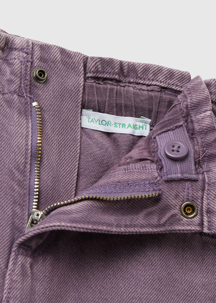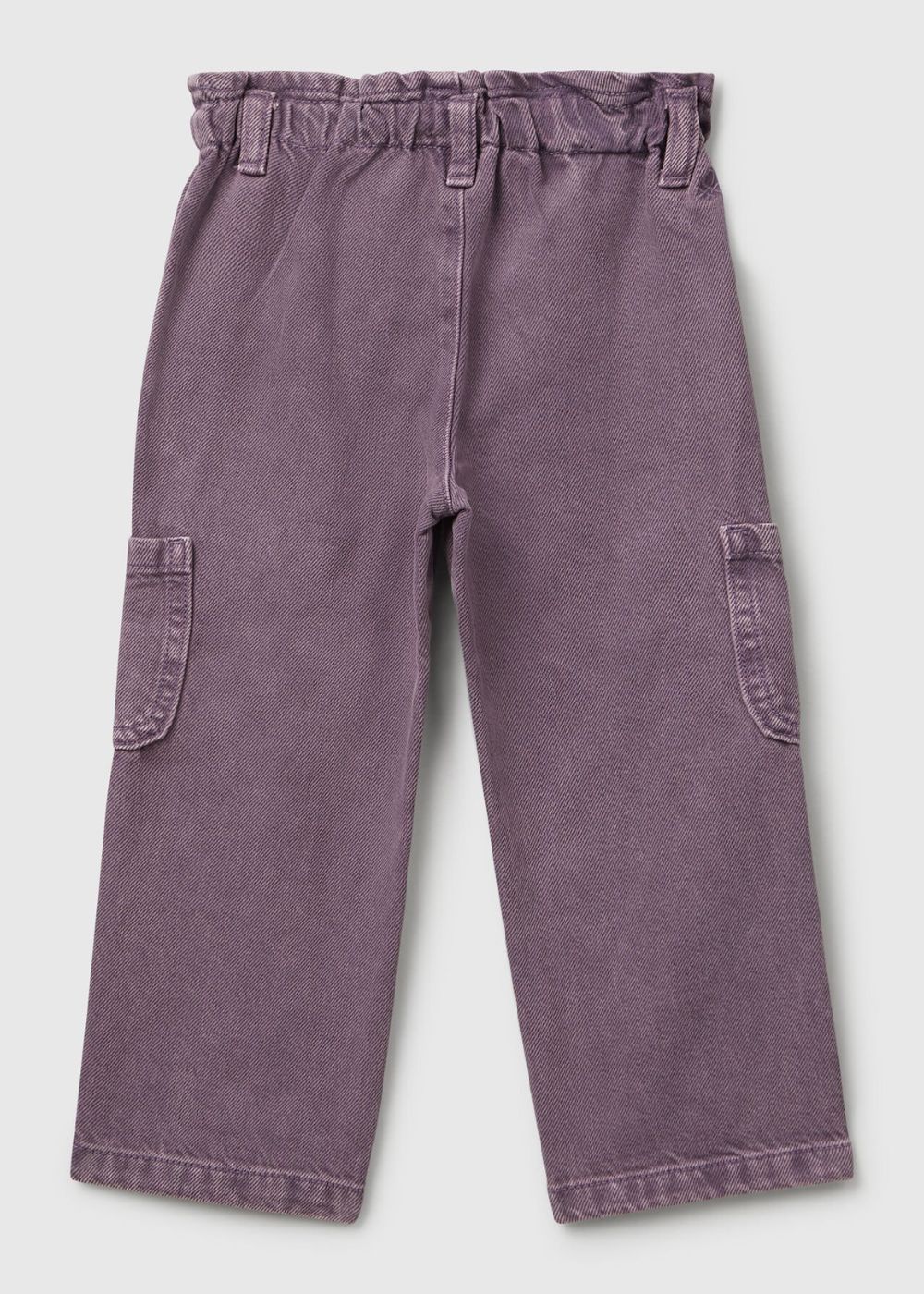 Long trousers in soft pure cotton. Gathered waist with zip and snap button opening, adjustable inner elastic. Front pockets and side patch pockets. For modern and decisive looks.