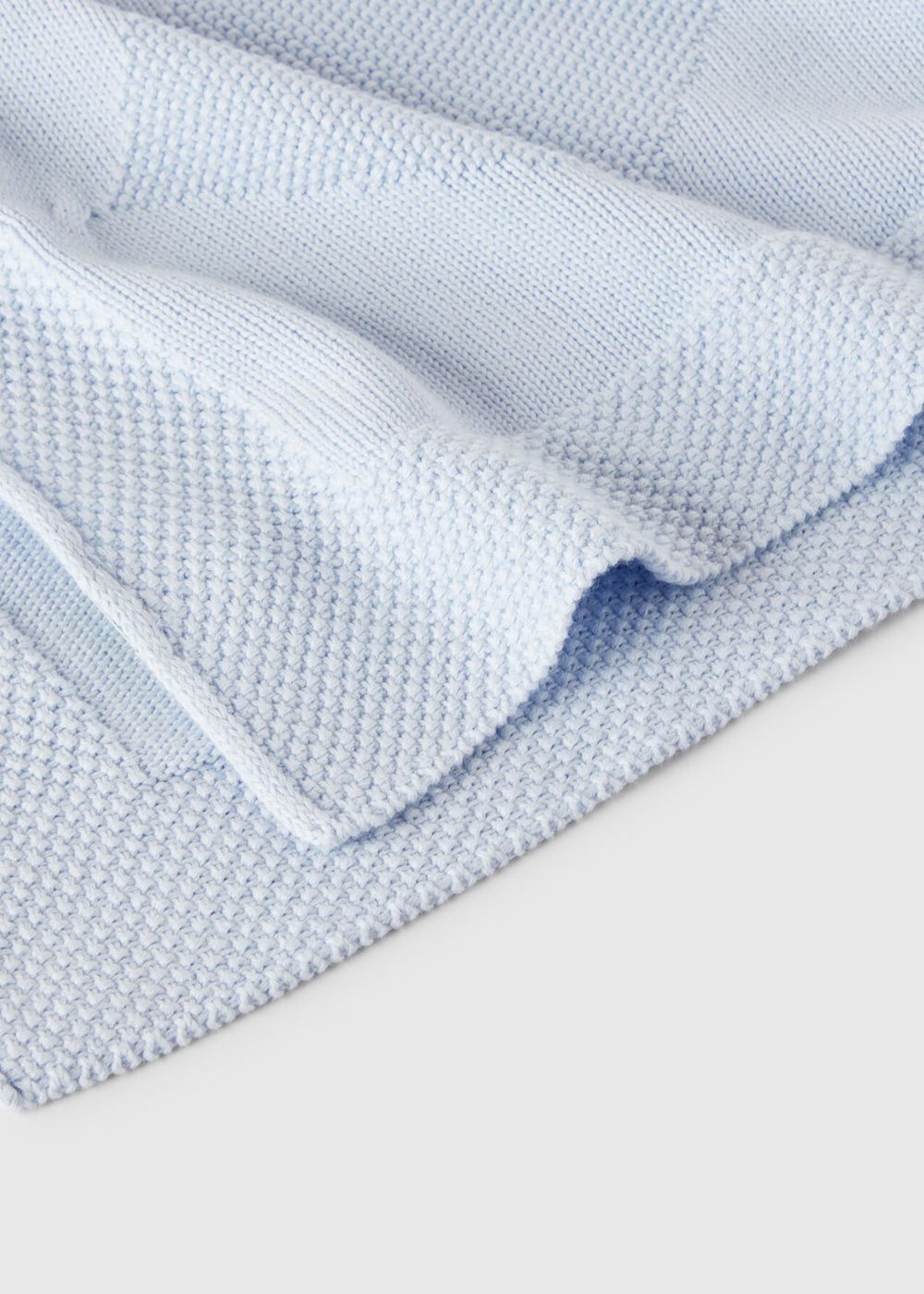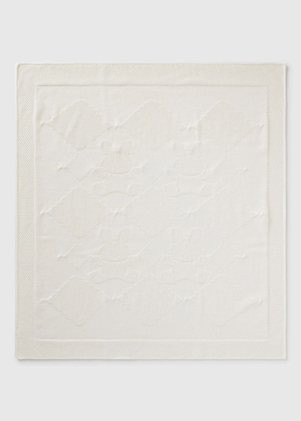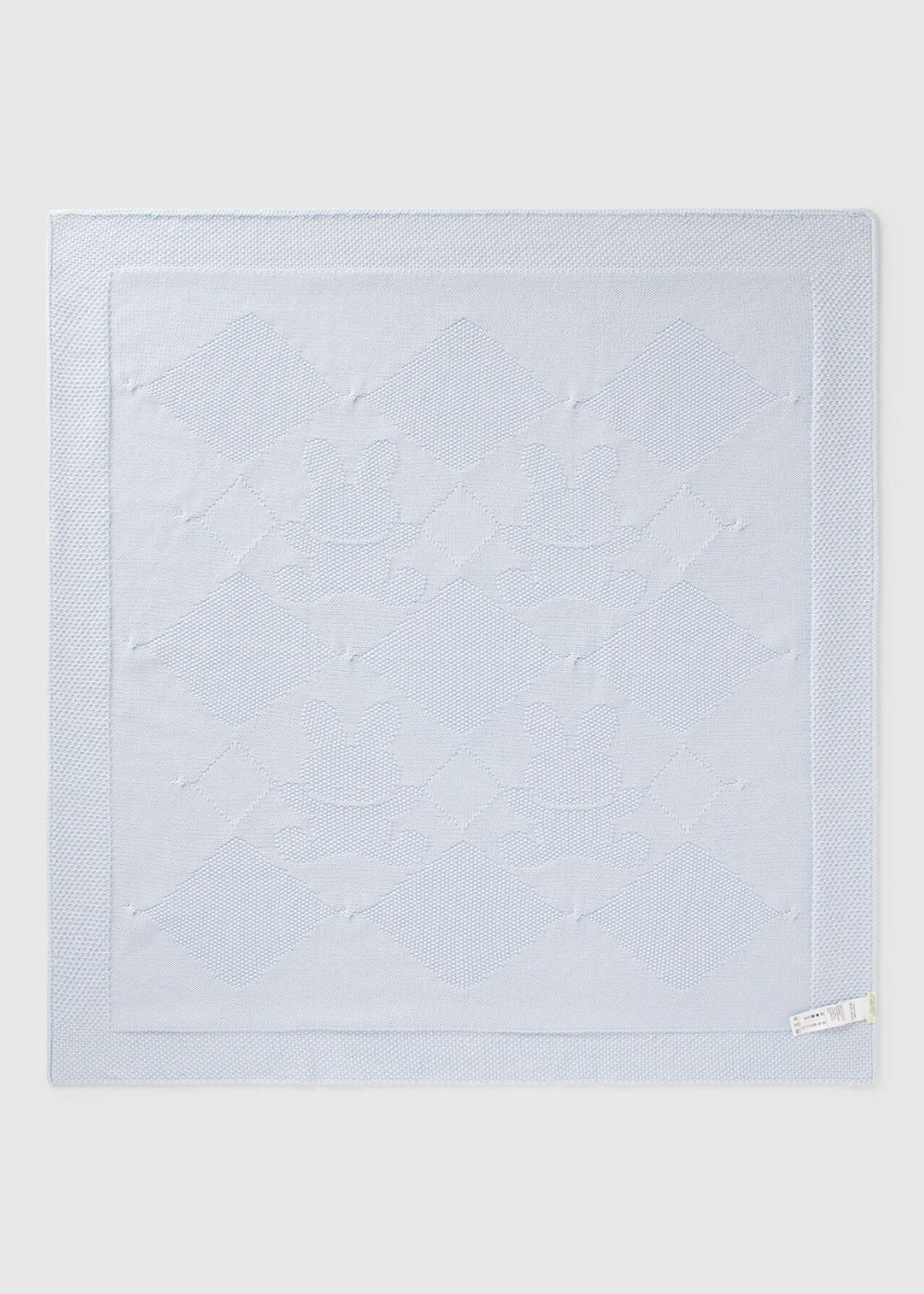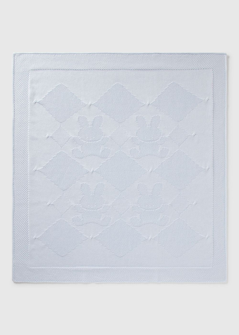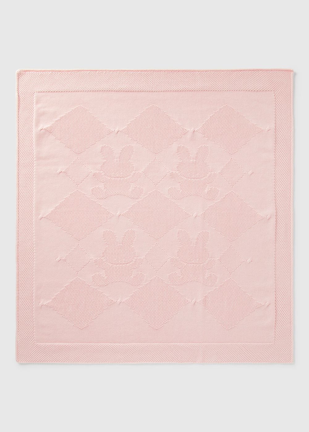 Pure cotton knit blanket for new born with stitching features. Cute bunny and diamond inlay. An "Easy Care" piece that can be machine-washed.