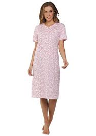 'floral fusion art' white, pink and light brown ladies short sleeve cotton nightdress with buttons, a round mandarin style neckline with a nice little small chest pocket.