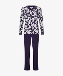 Pastunette Premium Pyjama Dark Orchid features a stylish floral print and a comfortable, loose fit. Perfect for a relaxing night in. The model is 174 cm tall and is wearing a size 38.