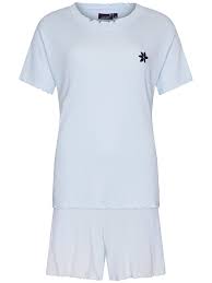 This fun shortama set comes from the Relax series by Rebelle by Pastunette. The set is uni light blue in color and has a subtle embroidered flower on the top. The top has short sleeves, a round neckline and fun playful ruffles on the neck and sleeves. The shorts have an elastic waistband and side pockets. The bottom of the pants also has playful ruffles, which gives the set an extra cheerful look. The shortama set is made of 80% cotton and 20% polyester in a fine rib quality. This composition is soft, supple and moisture-absorbent, which provides extra comfort. In addition, it is easy to maintain and hard-wearing, ideal for daily use.