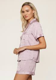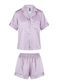 The beautiful Shortama Set Dark Denim from LingaDore features a short-sleeved blouse and shorts in a beautiful satin fabric.