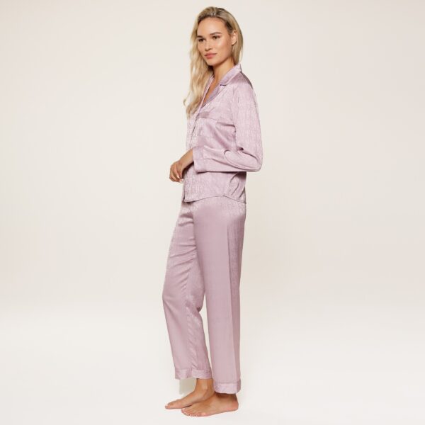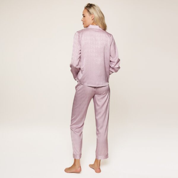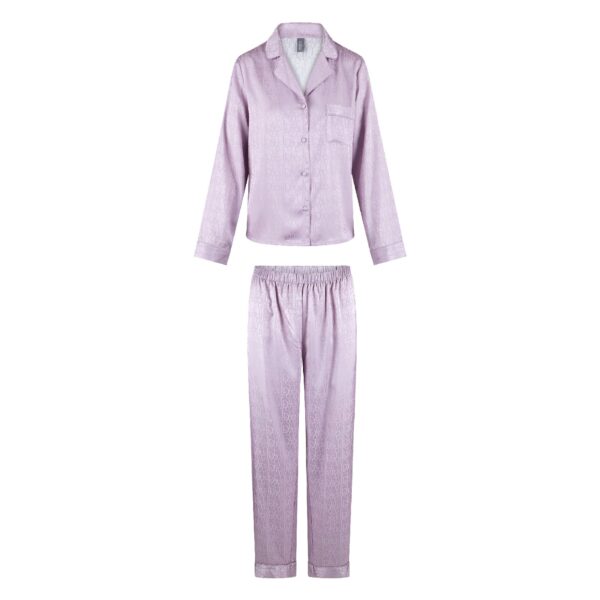 This pink floral print adds a playful touch to your lounging experience. The set effortlessly blends comfort and style, featuring long, flowy pants and a short-sleeved top with a sophisticated V-neck. It's the perfect choice for both laid-back days and stylish lounging sessions.